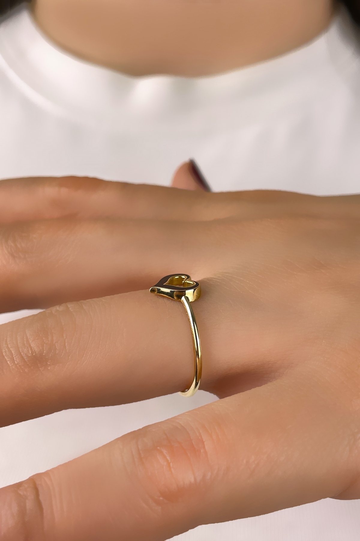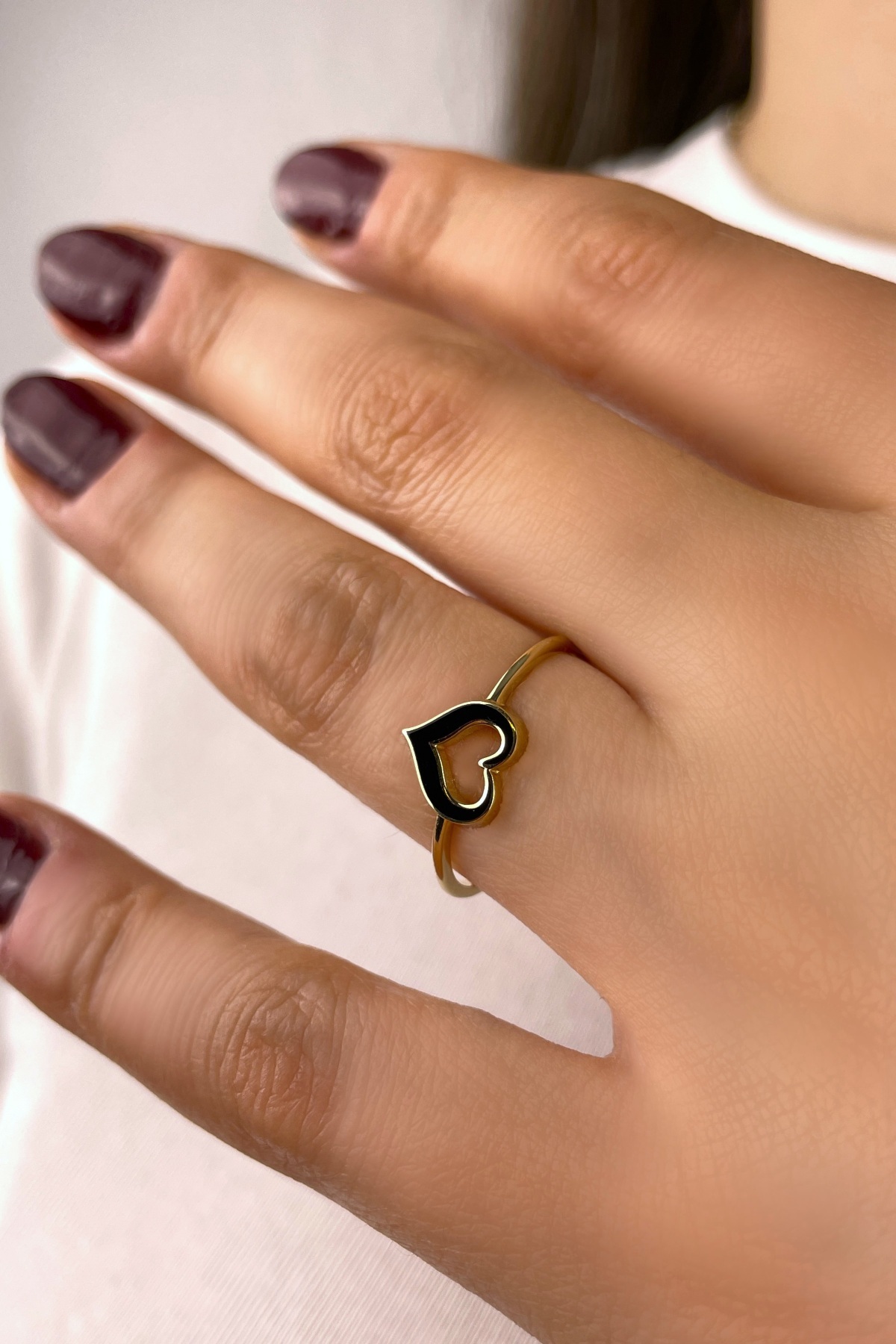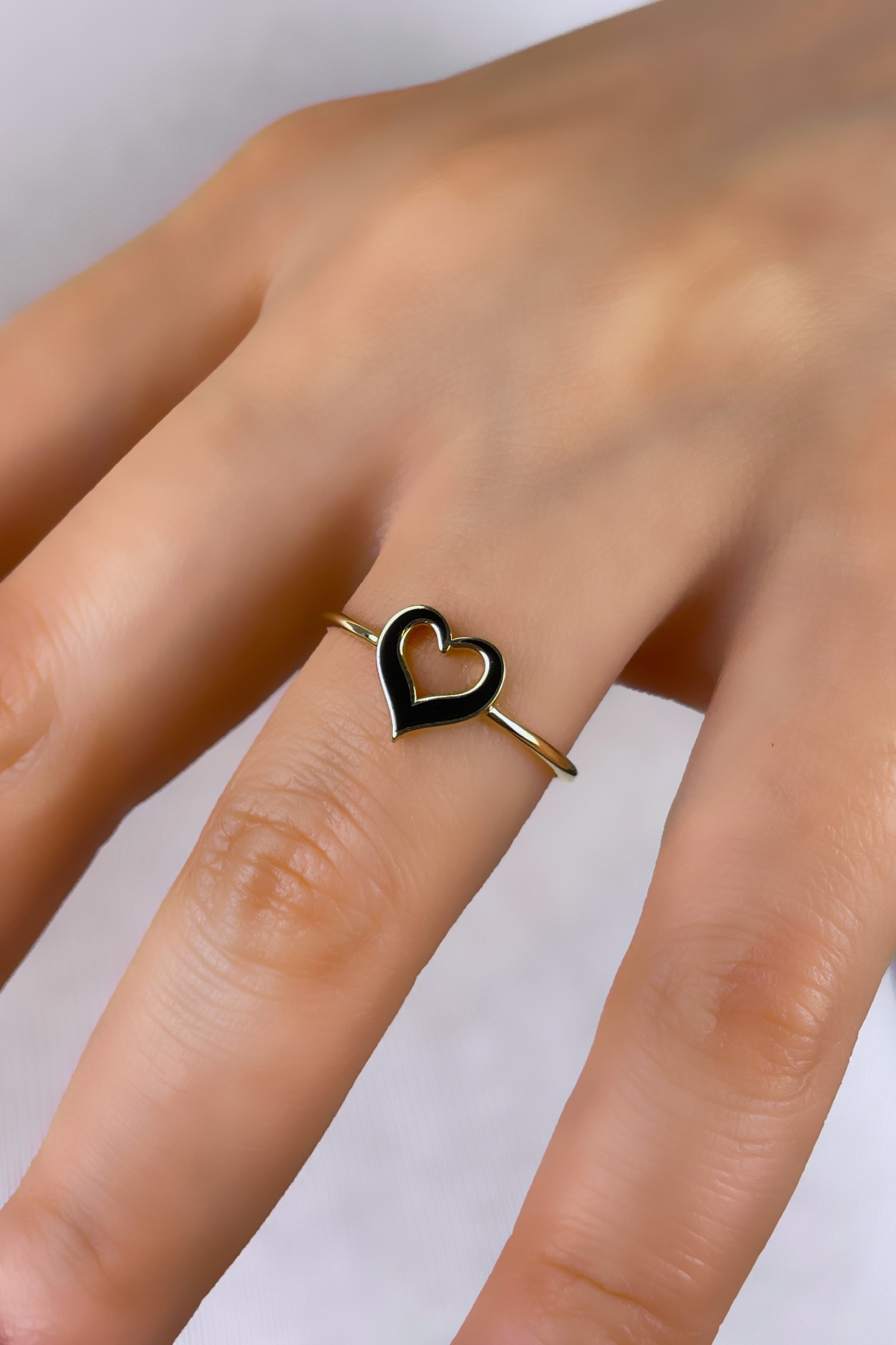 Altınaşkı Siyah Mineli Kalp Altın Yüzük 14YZ9042