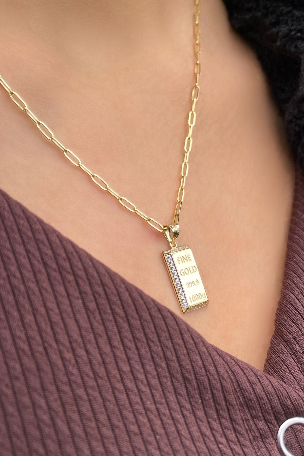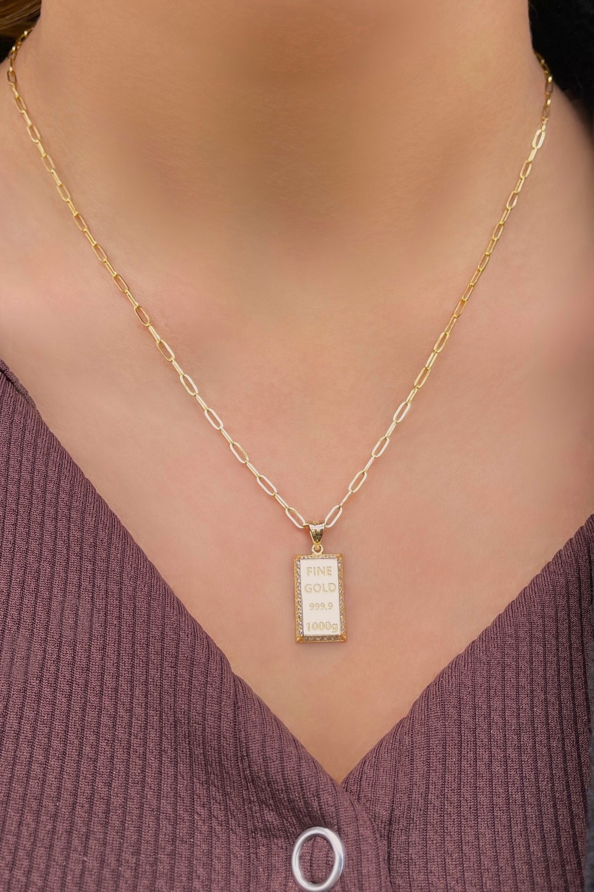 Ataş Zincirli Taşlı Külçe Altın Kolye 14KLY5777