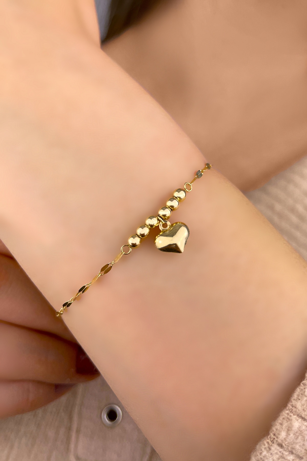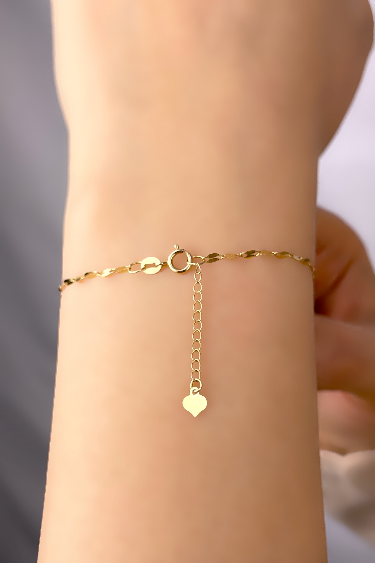Aynalı Zincirli Kalpli Altın Bileklik 14KNY883