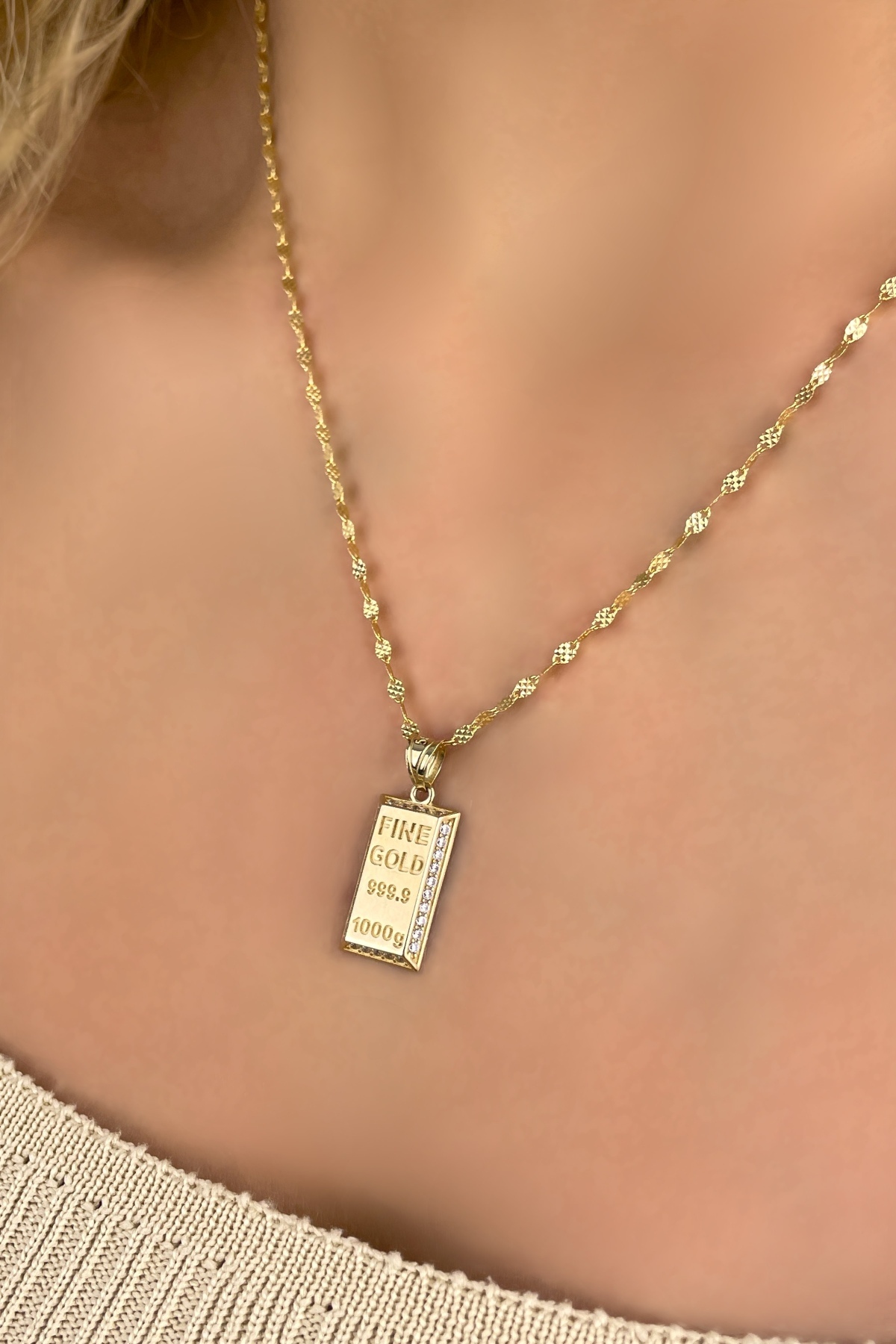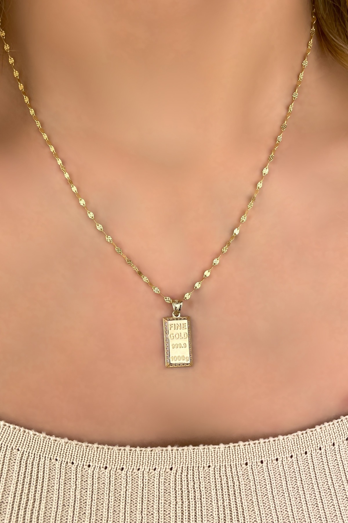 Aynalı Zincirli Külçe Altın Kolye 14KLY5644