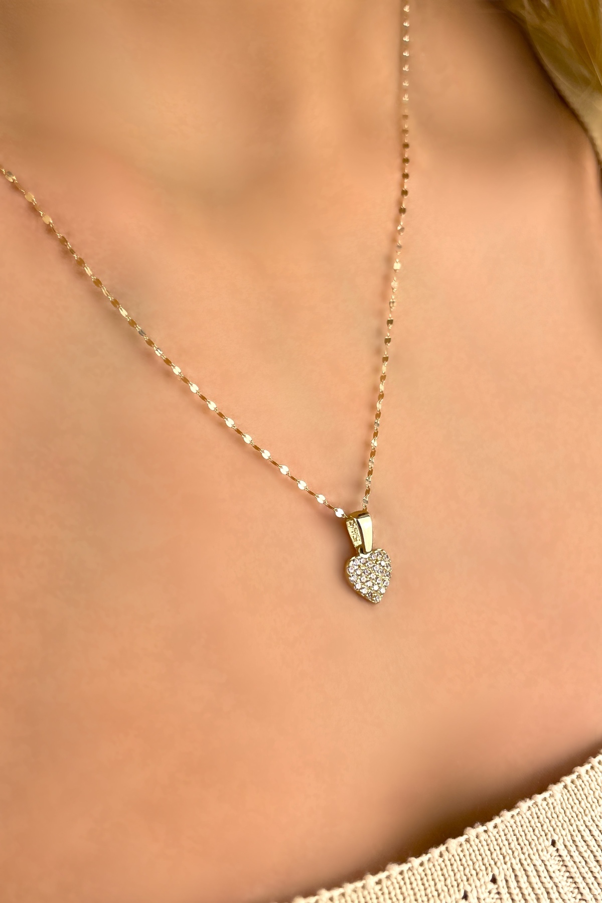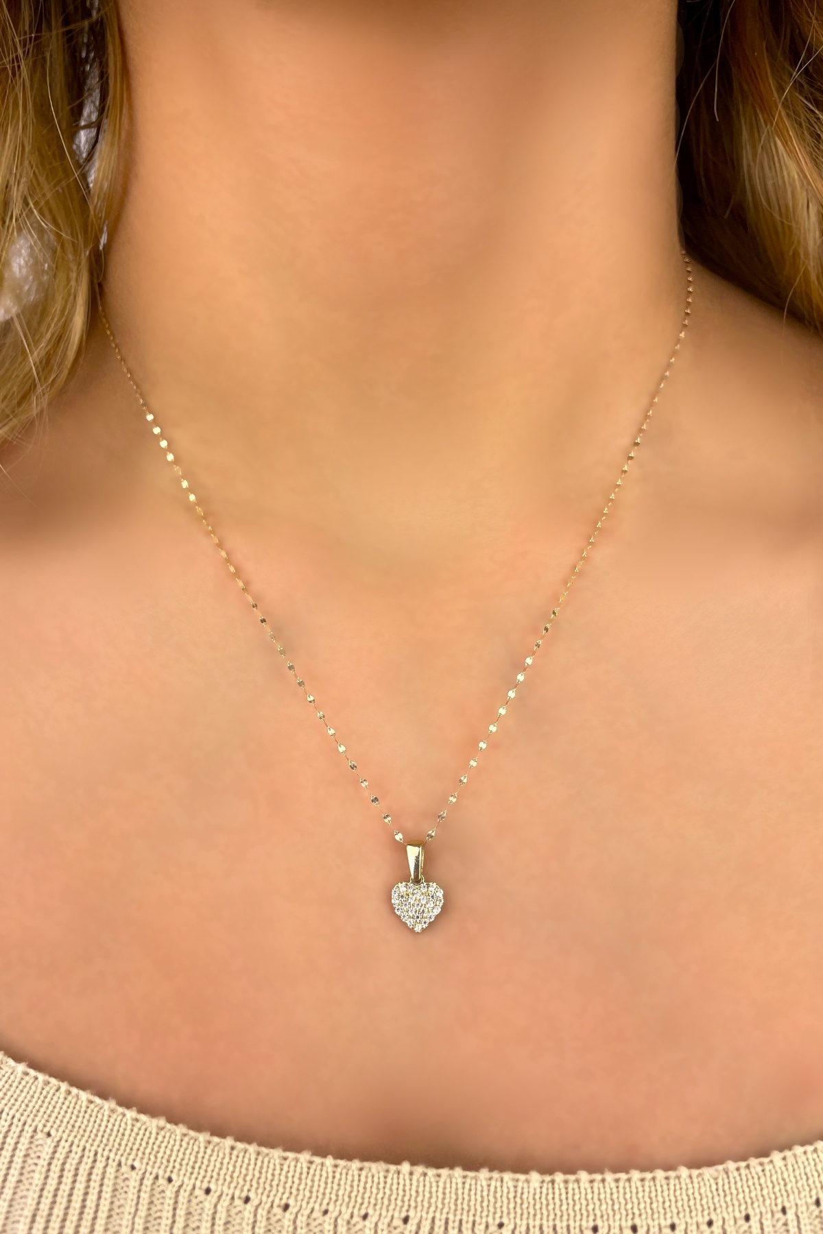 Aynalı Zincirli Taşlı Kalp Altın Kolye 14KLY8965