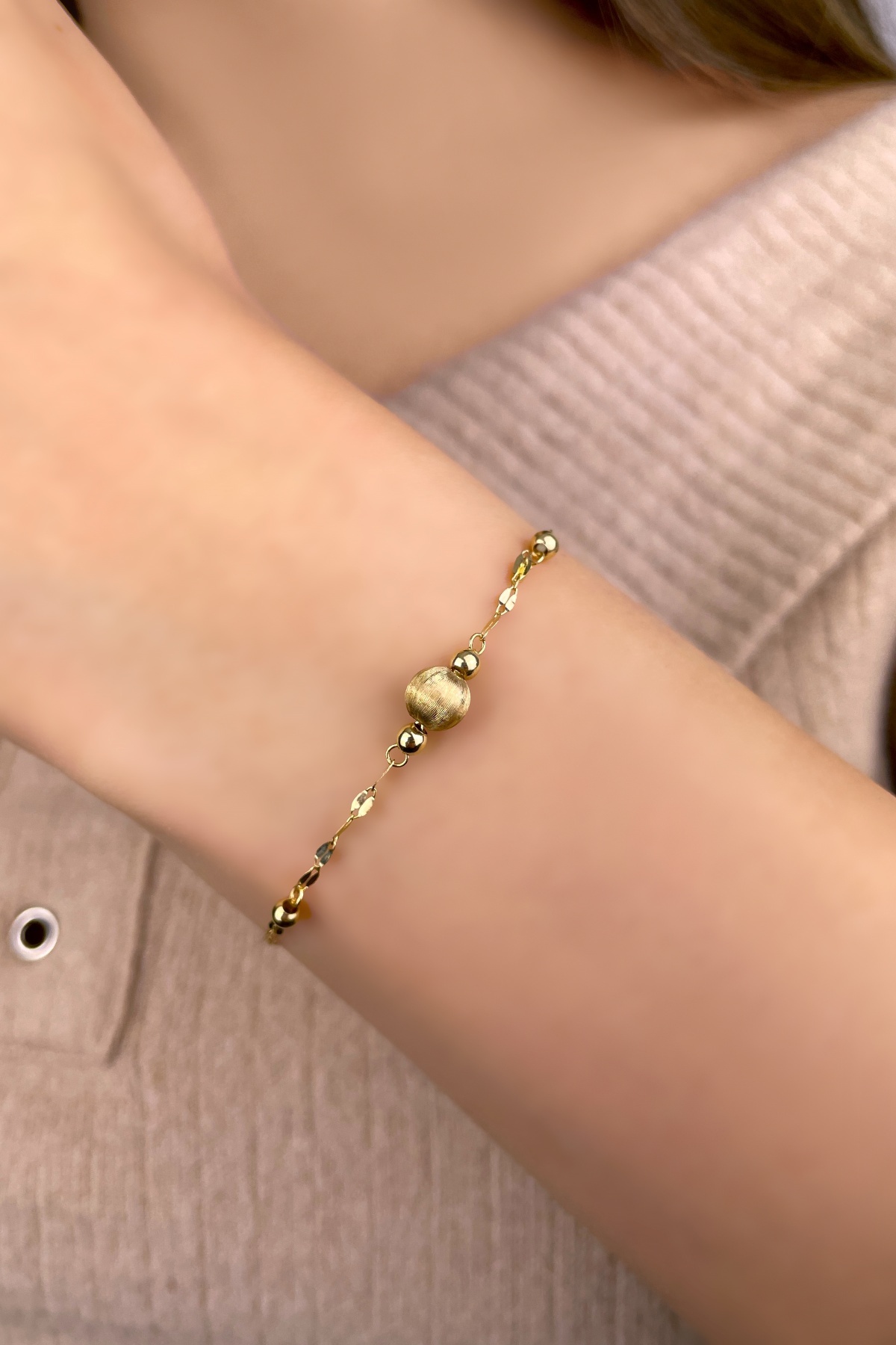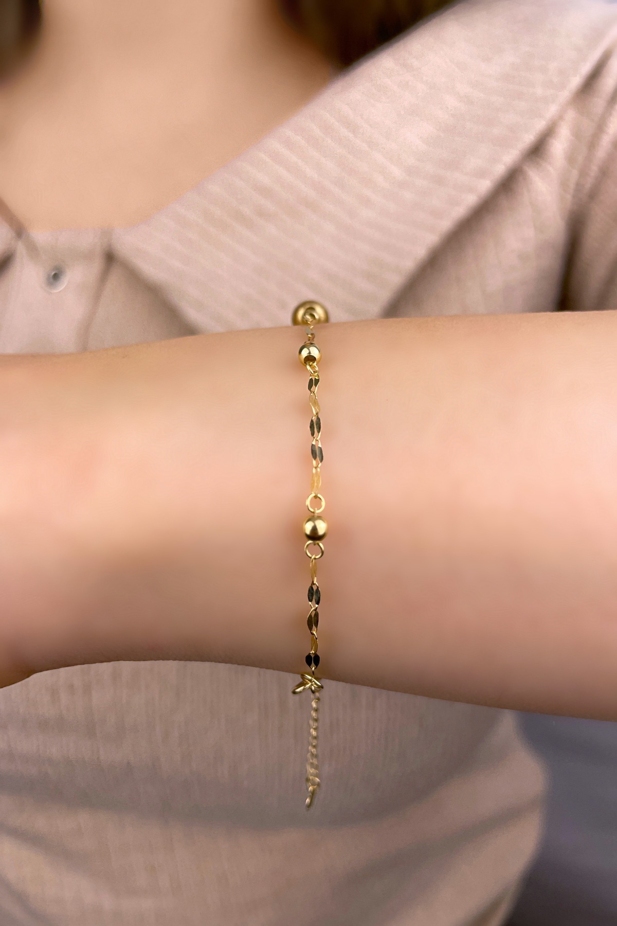 Aynalı Zincirli Toplu Altın Bileklik 14KNY892
