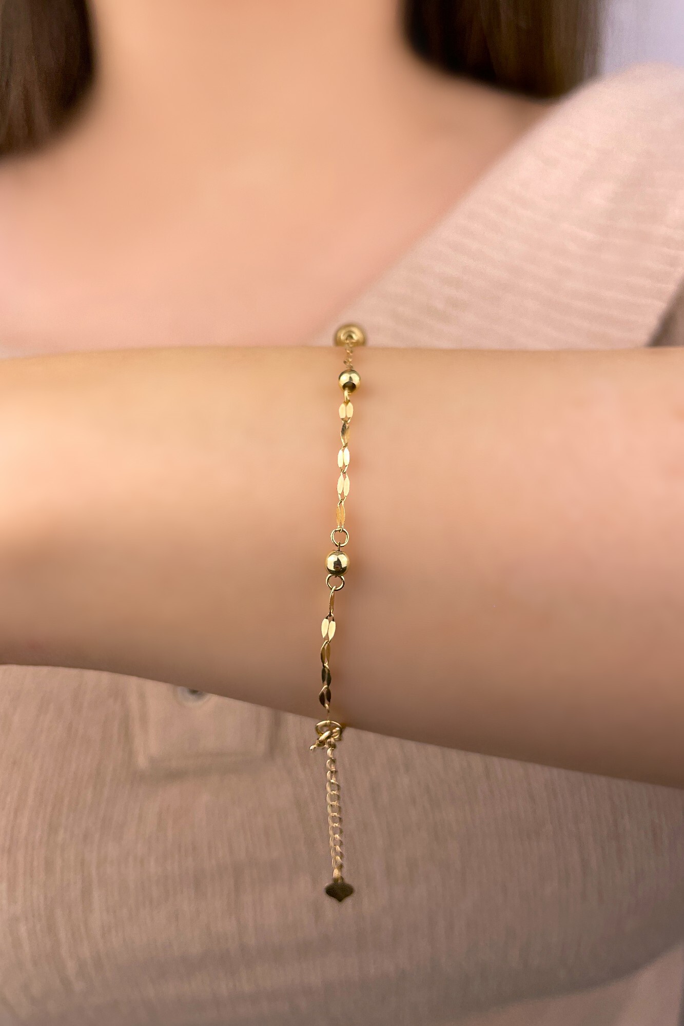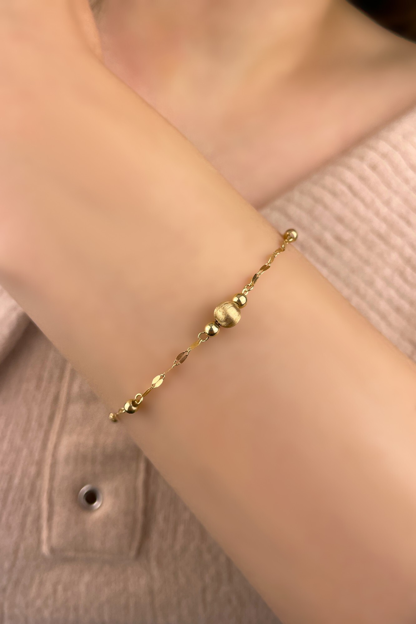 Aynalı Zincirli Toplu Altın Bileklik 14KNY901