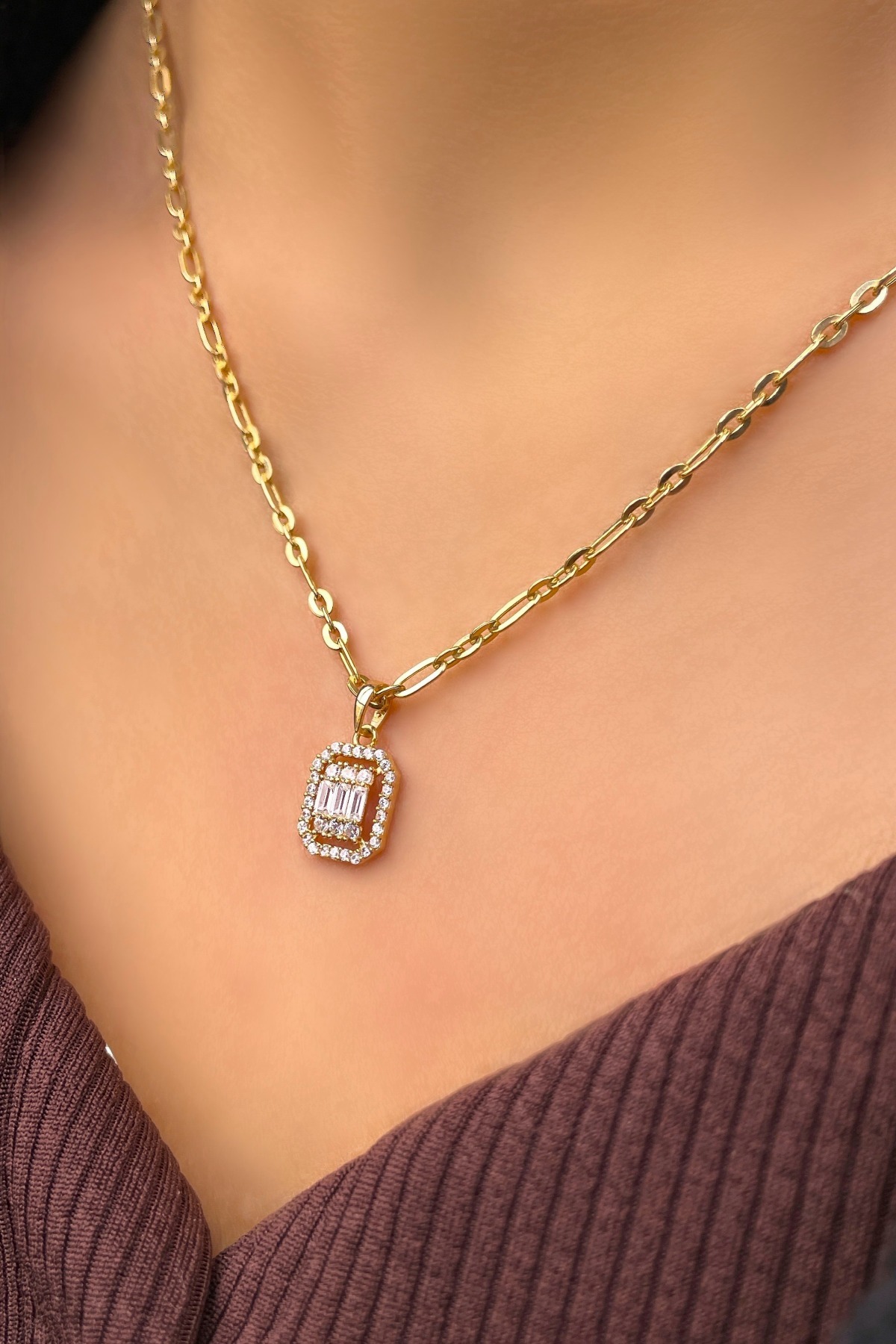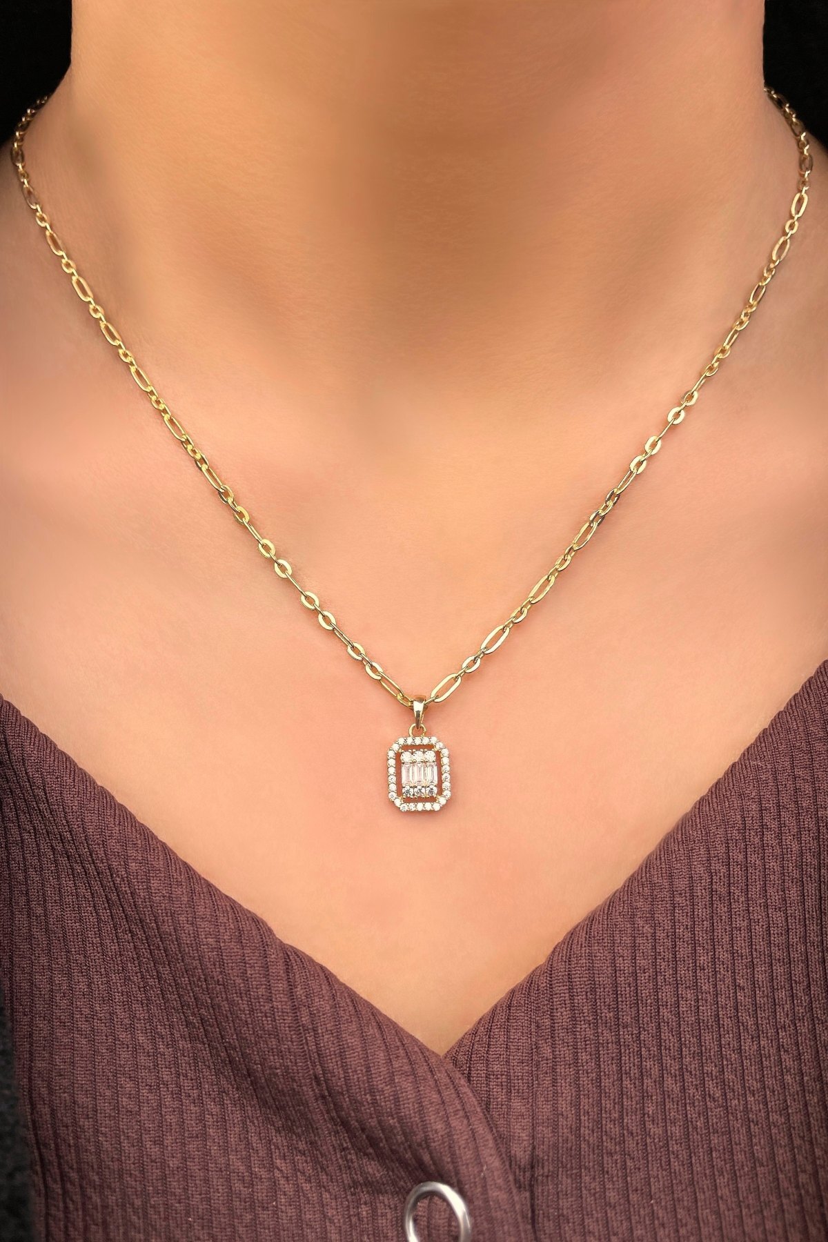 Baget Taşlı Altın Kolye 8KLY8876