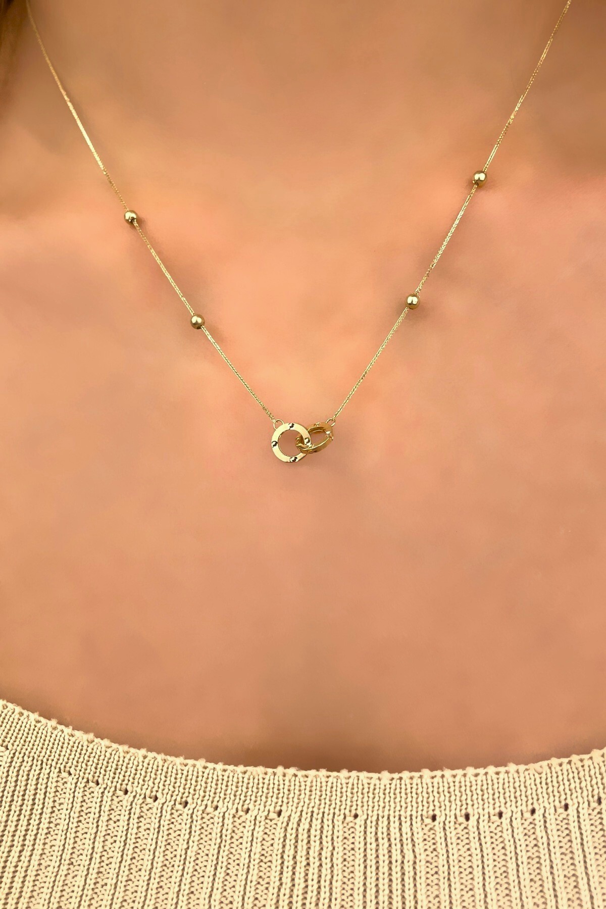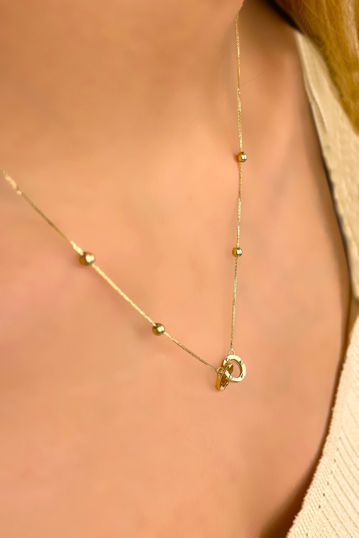 Çift Halka Altın Kolye 14KLY936