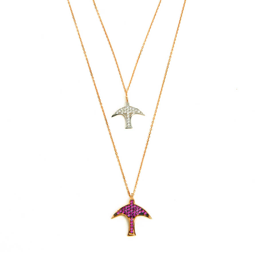 Çift Zincirli Kırlangıç Kolye 14KLY77