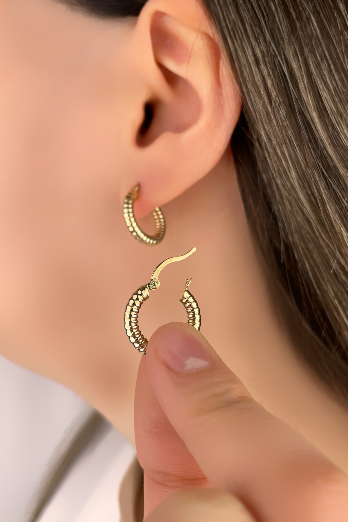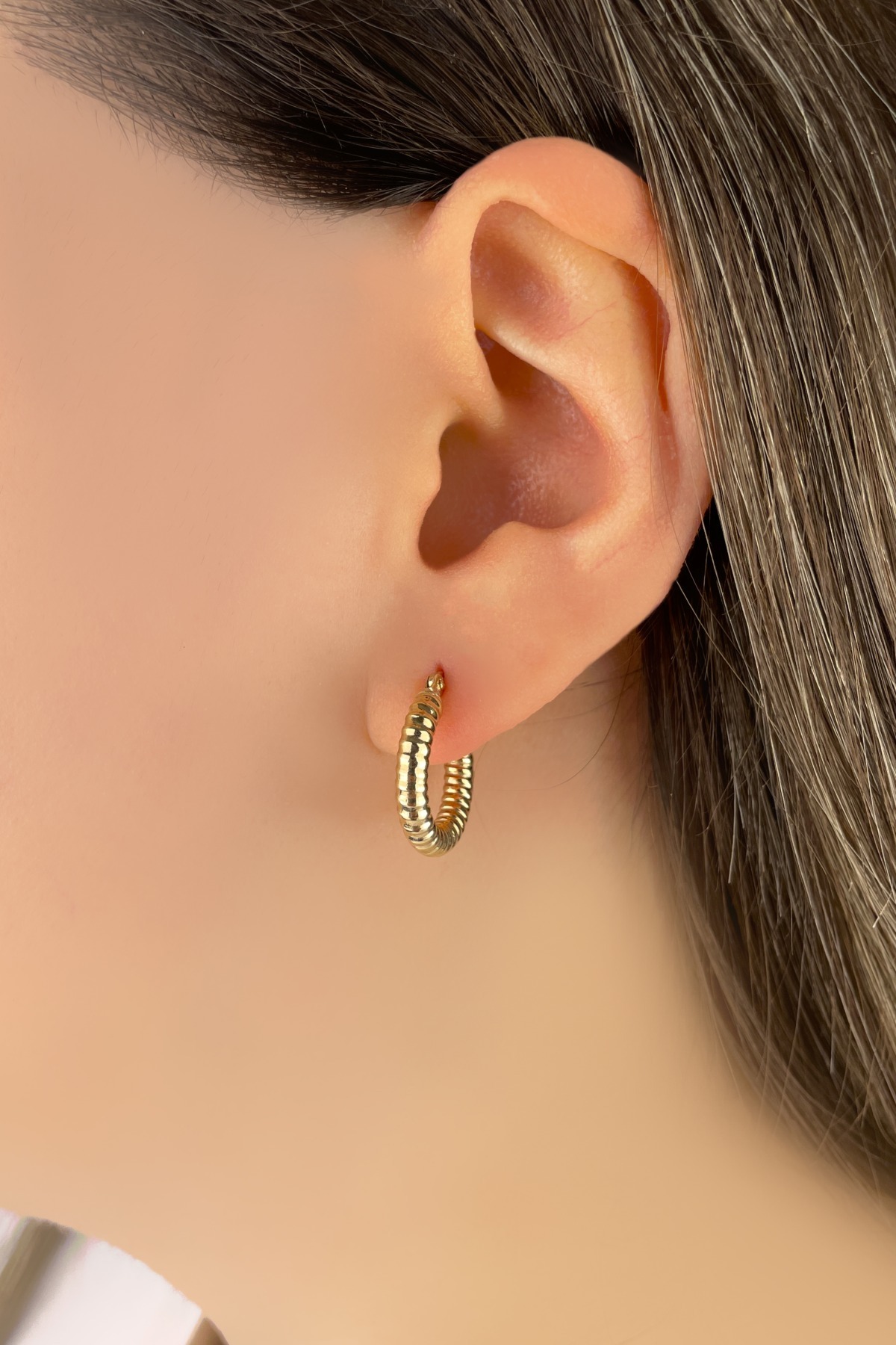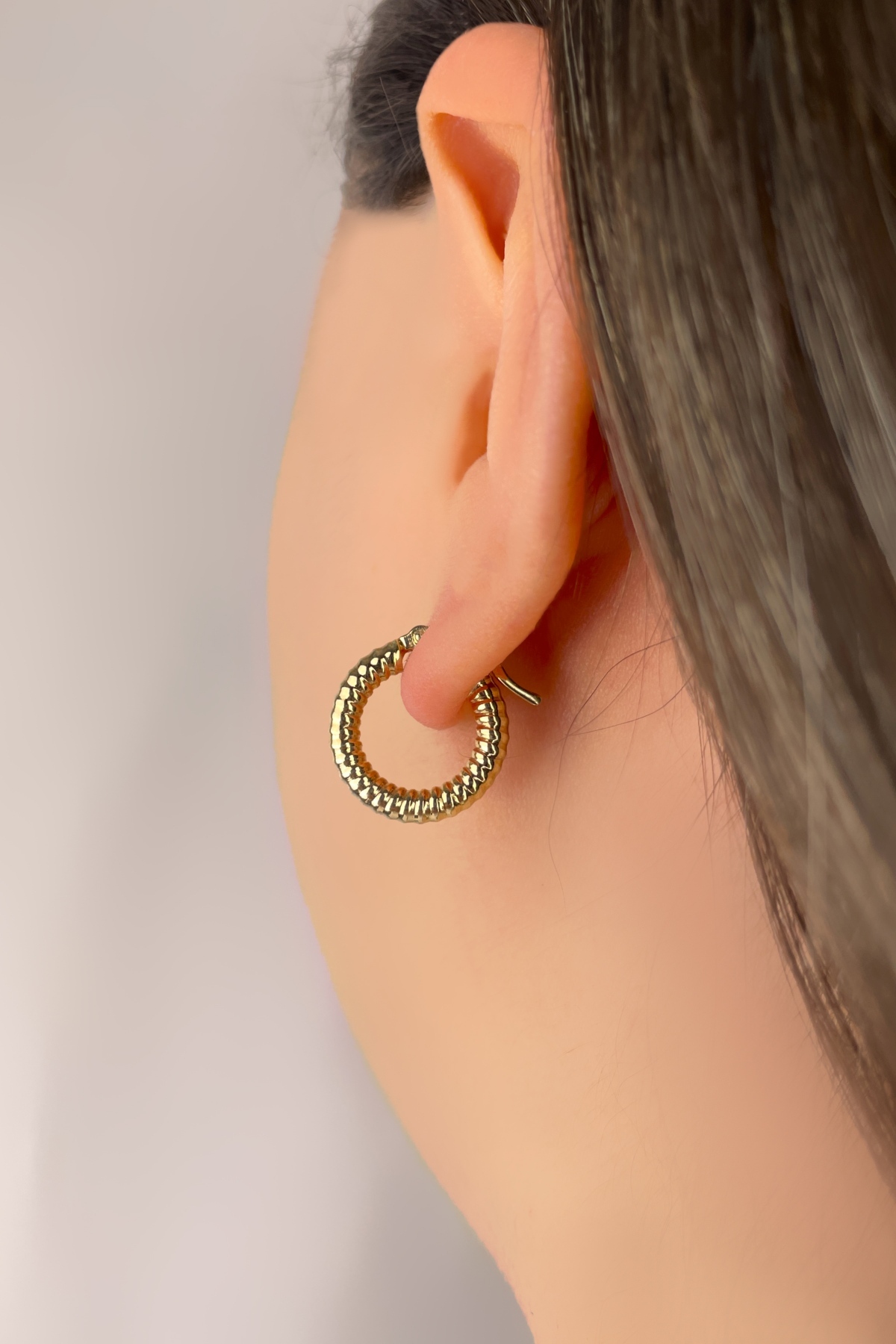 Desenli Halka Altın Küpe 8KP2839