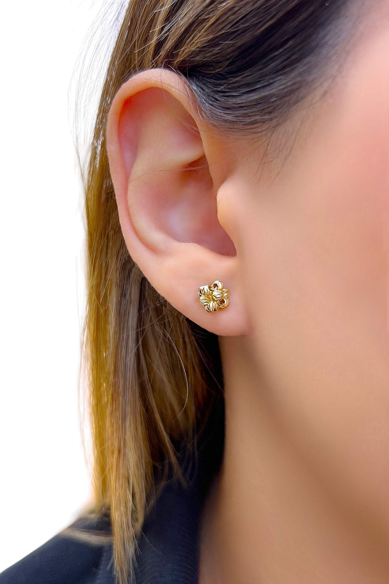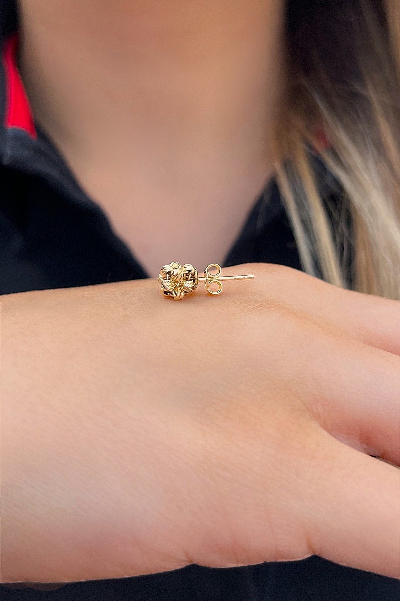 Aşk Düğümü Çift Renkli Altın Küpe 14KP2717