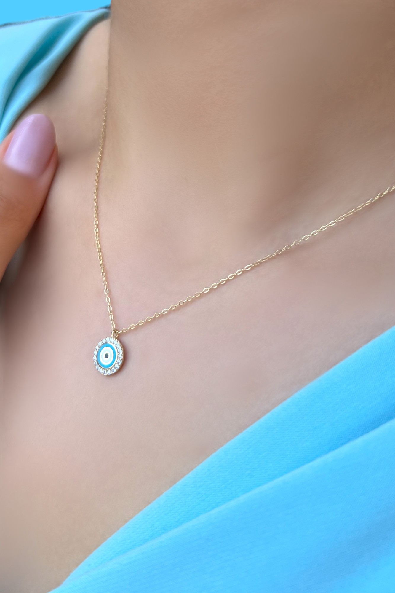 Firuze Nazar Taşlı Hayalet Altın Kolye 8KLY886