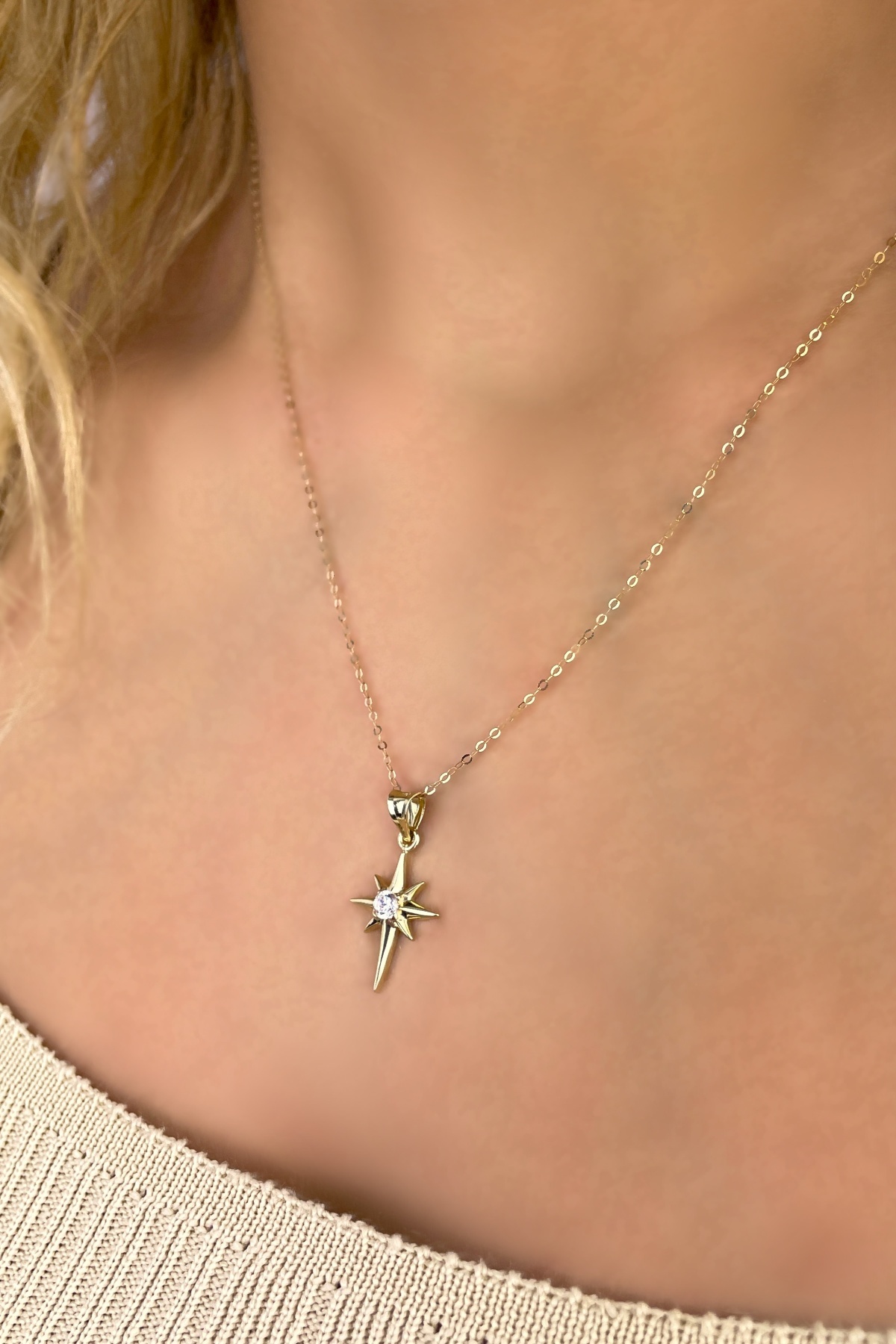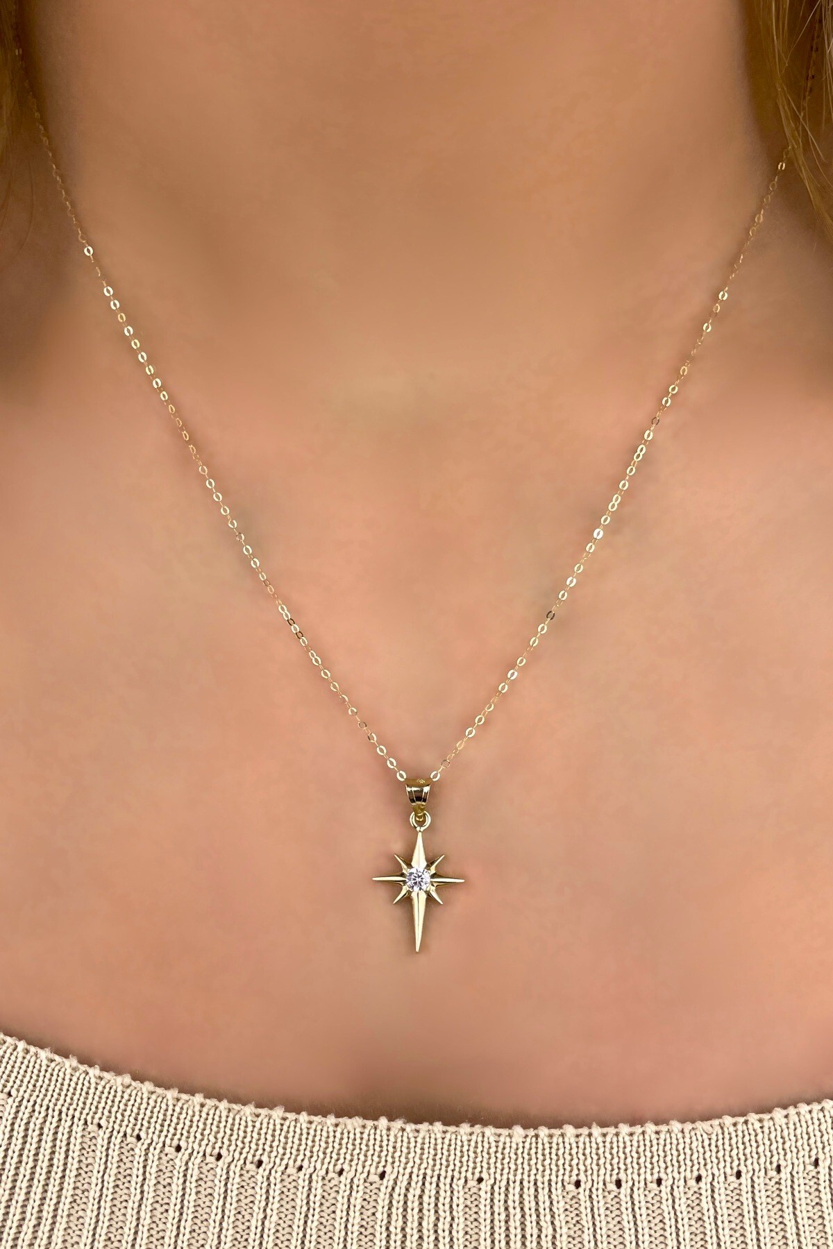 Halka Zincirli Taşlı Kuzey Yıldızı Altın Kolye 14KLY5432