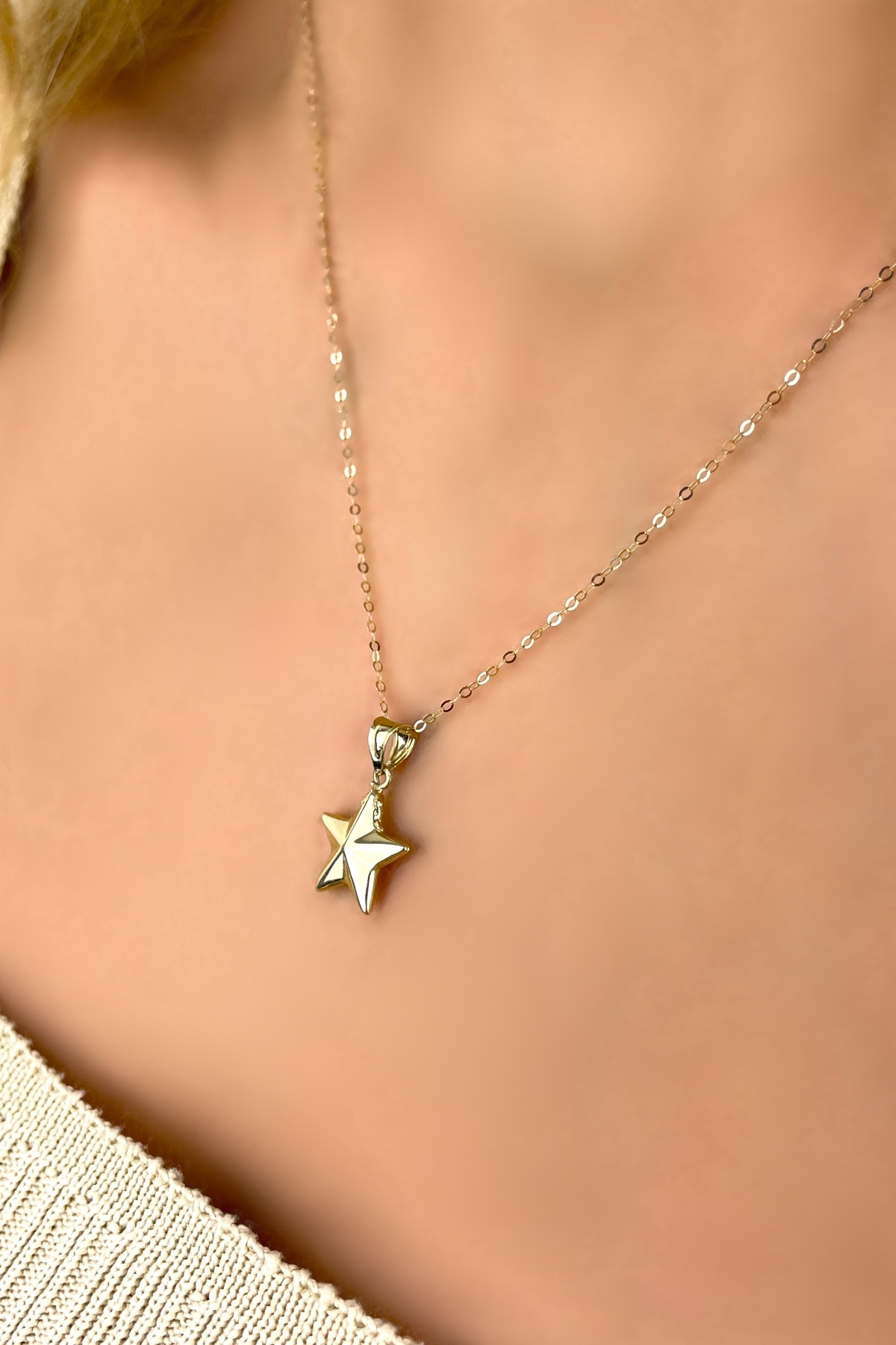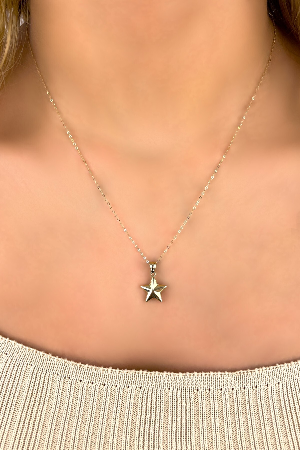 Halka Zincirli Yıldız Altın Kolye 14KLY4563