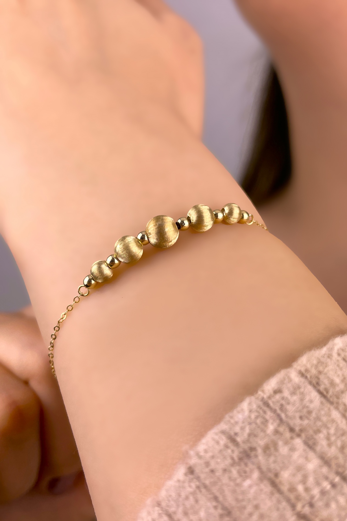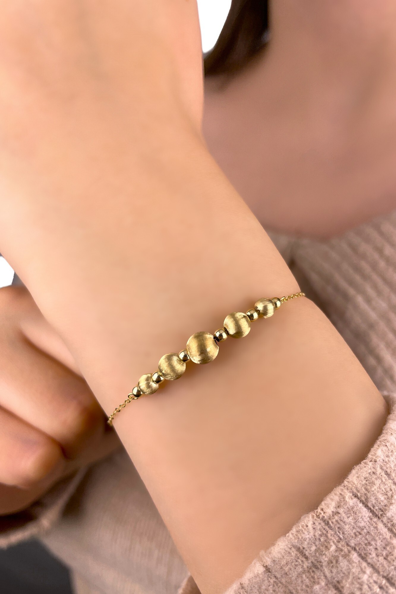 İtalyan Parlak Toplu Altın Bileklik 14KNY893
