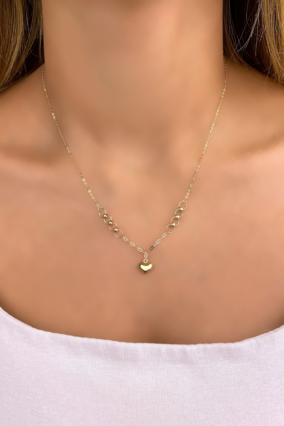 Kalp Halka Altın Kolye 14KLY915