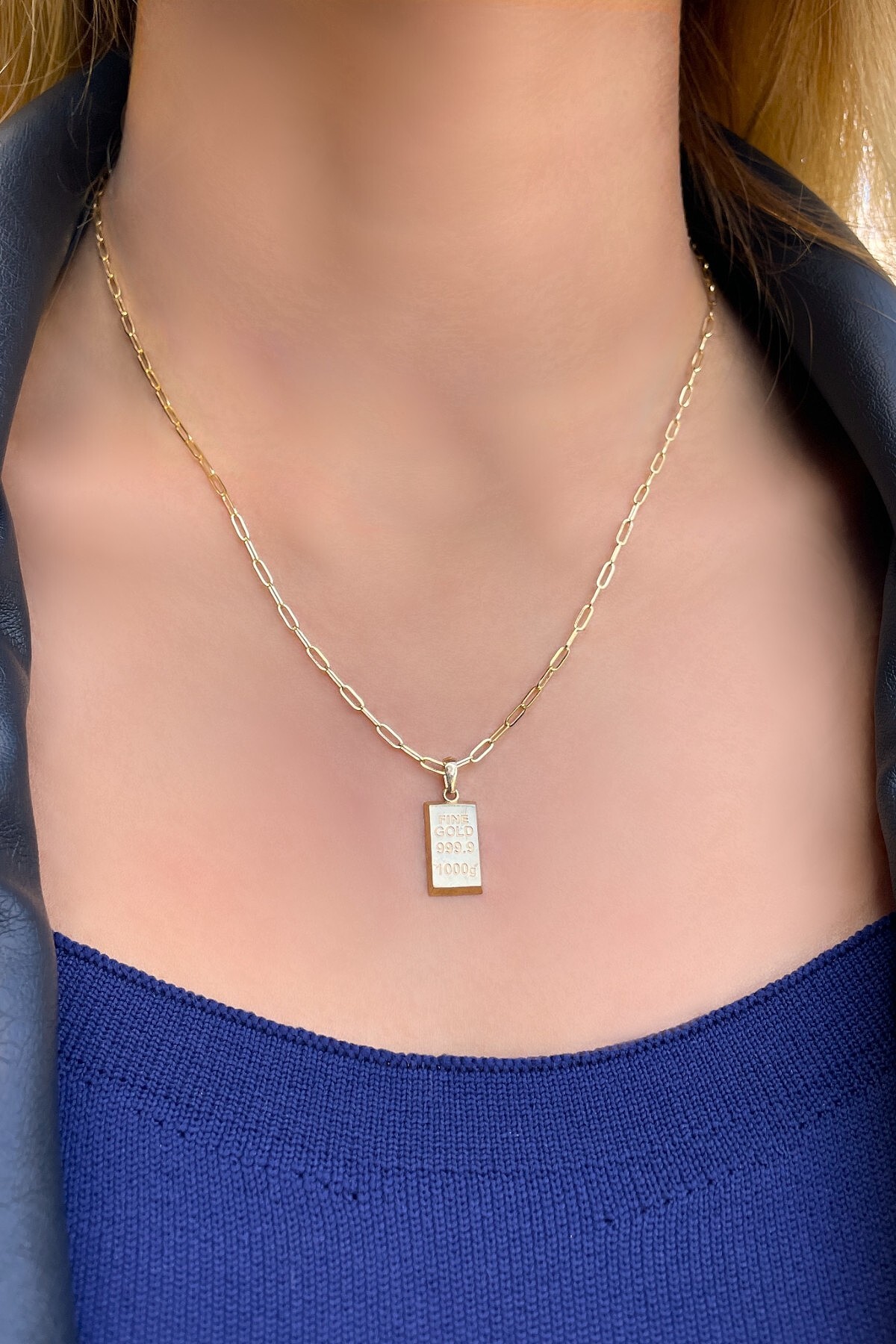 Külçe Uç Aynalı Altın Kolye 14KLY5704