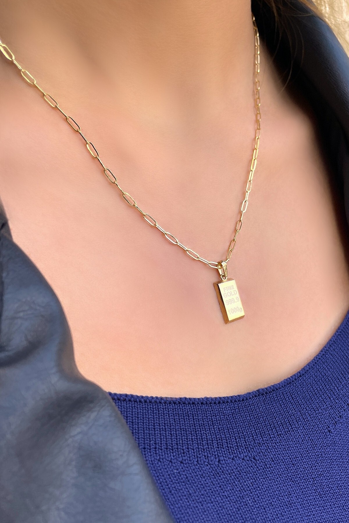 Taşlı Külçe Parlak Altın Kolye 14KLY5512