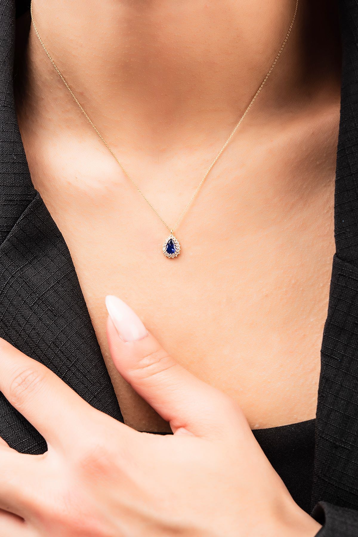 Lacivert Taşlı Damla Hayalet Altın Kolye 8KLY761