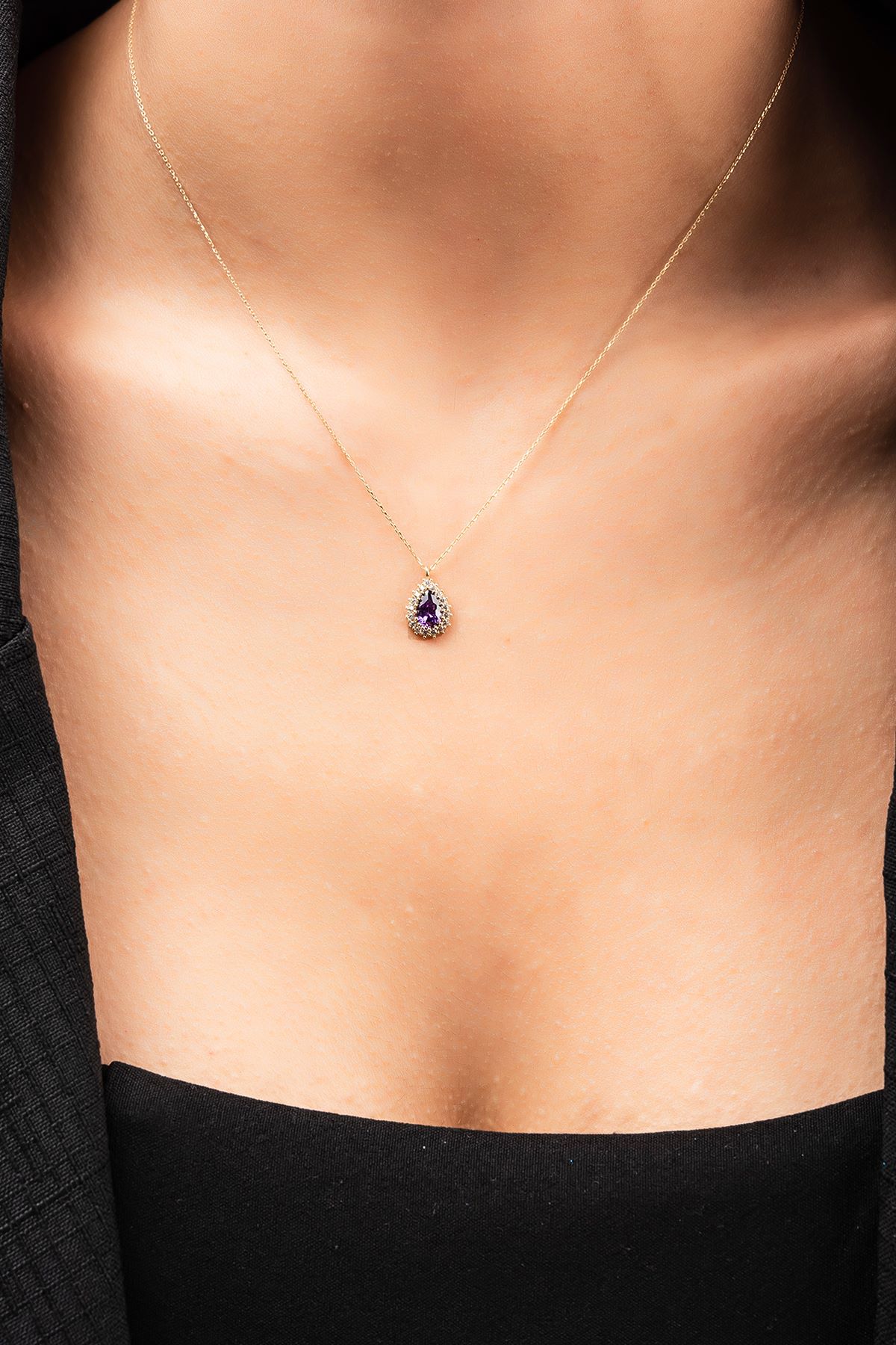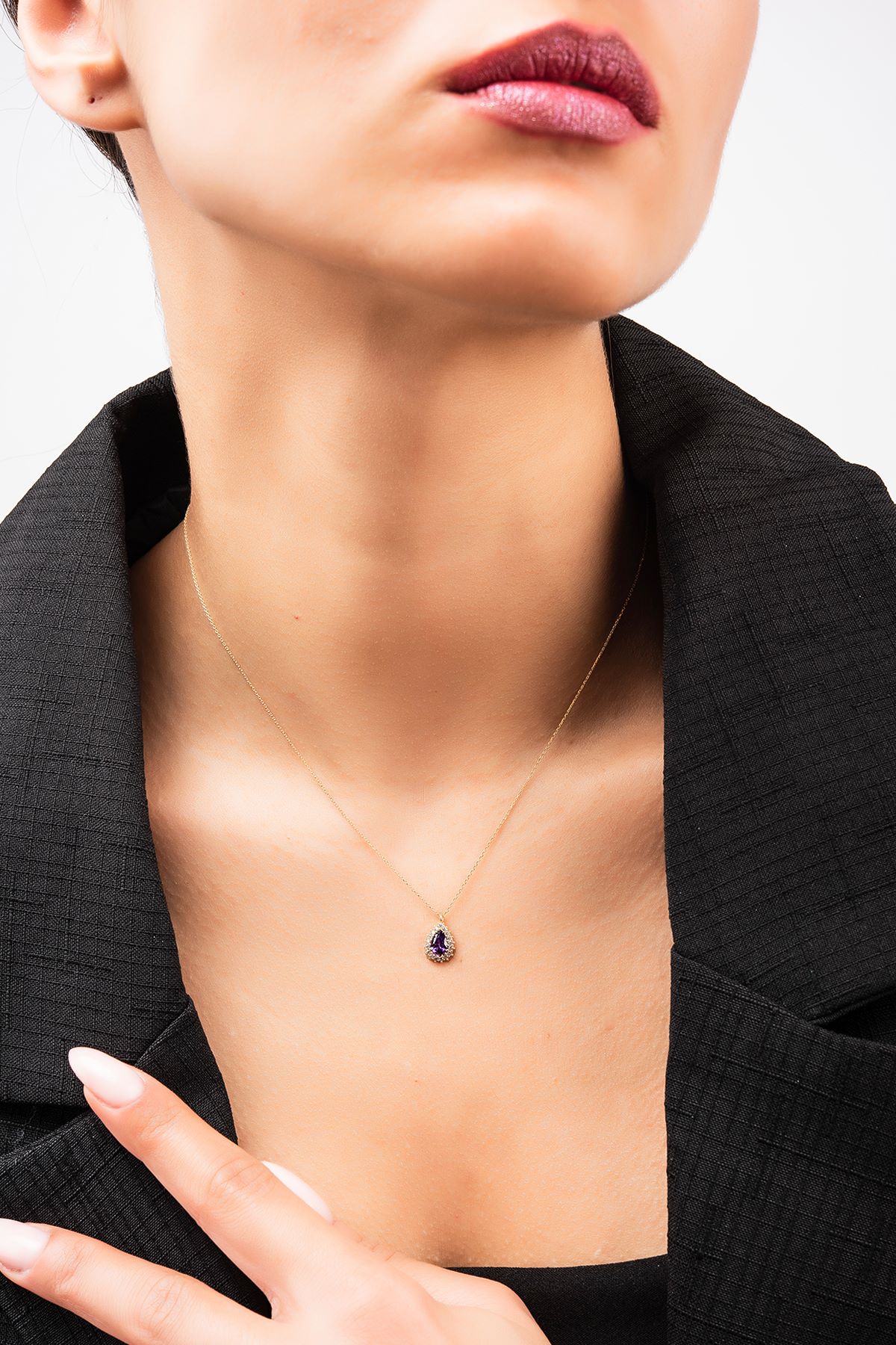 Mor Taşlı Damla Hayalet Altın Kolye 8KLY760
