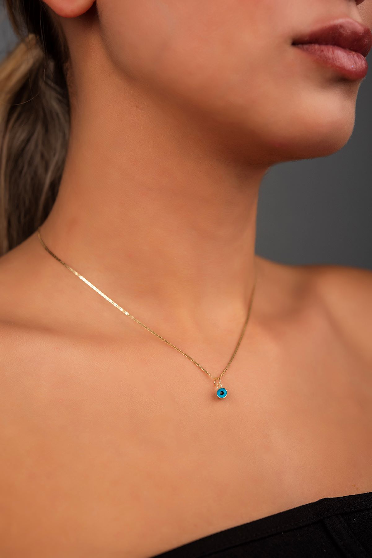 Parlak Zincirli Göz Boncuklu Altın Kolye 14KLY3020