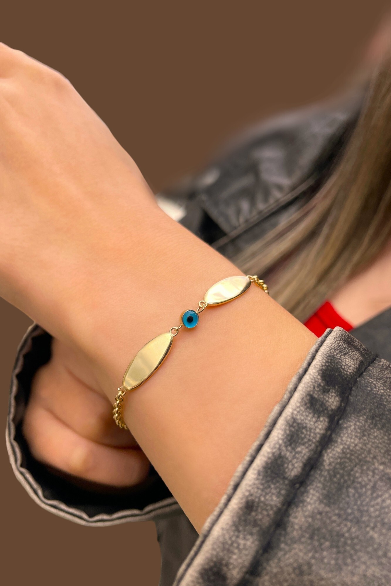 Baget Taşlı Balıksırtı Altın Bileklik 14KNY4276
