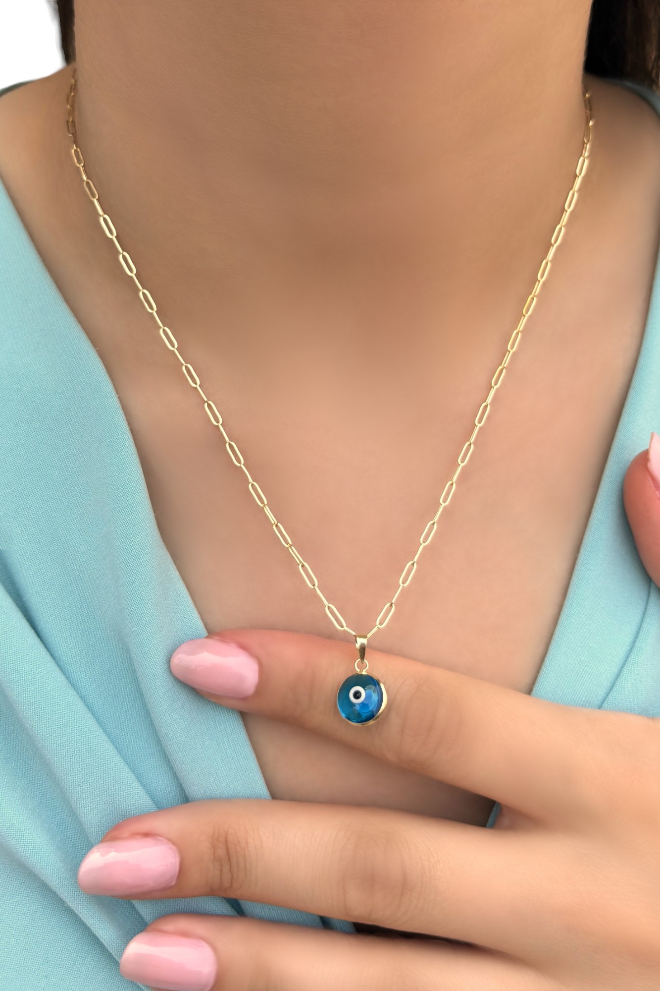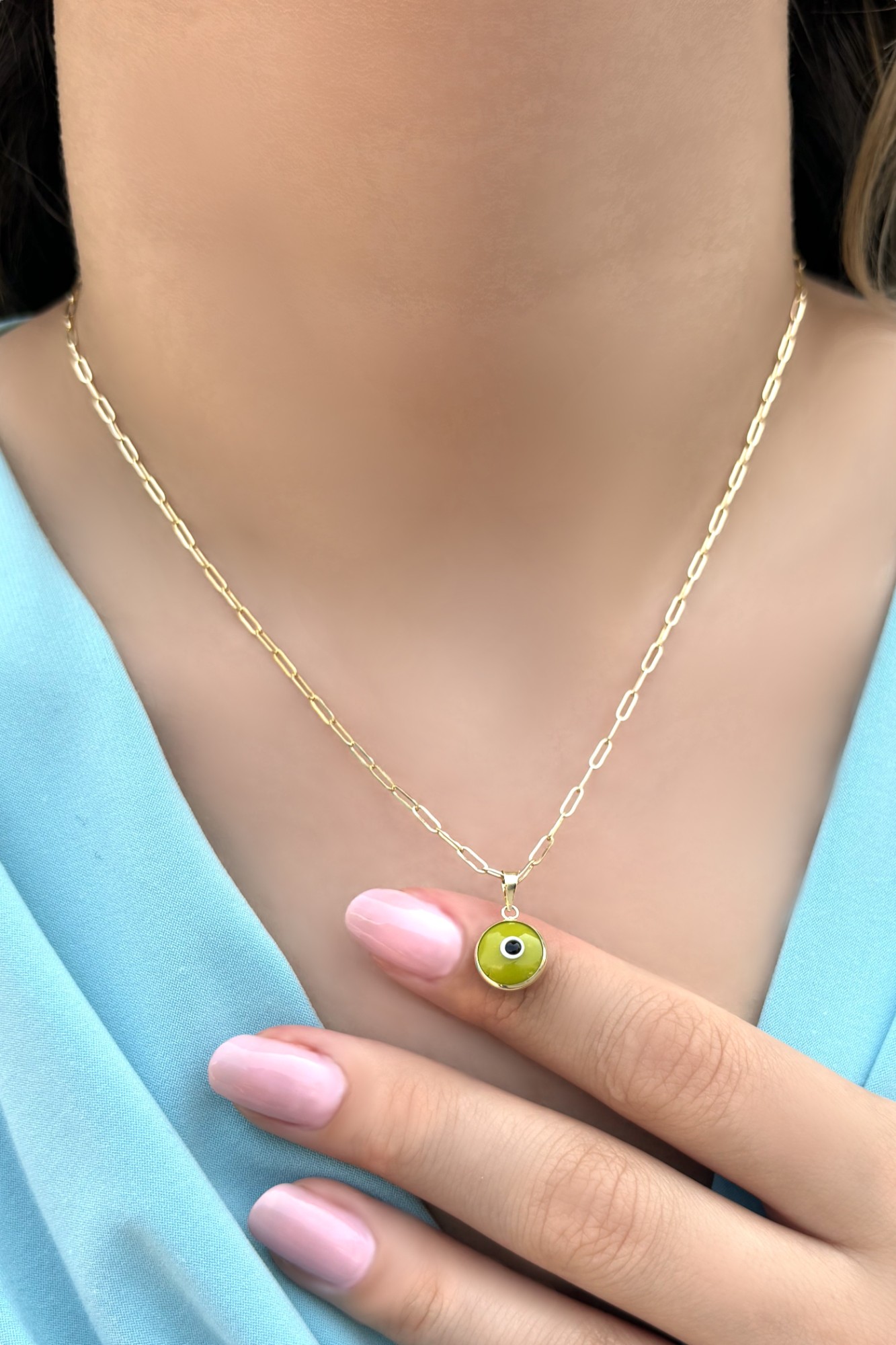 Renkli Gözlü Ataş Altın Kolye 14KLY8659