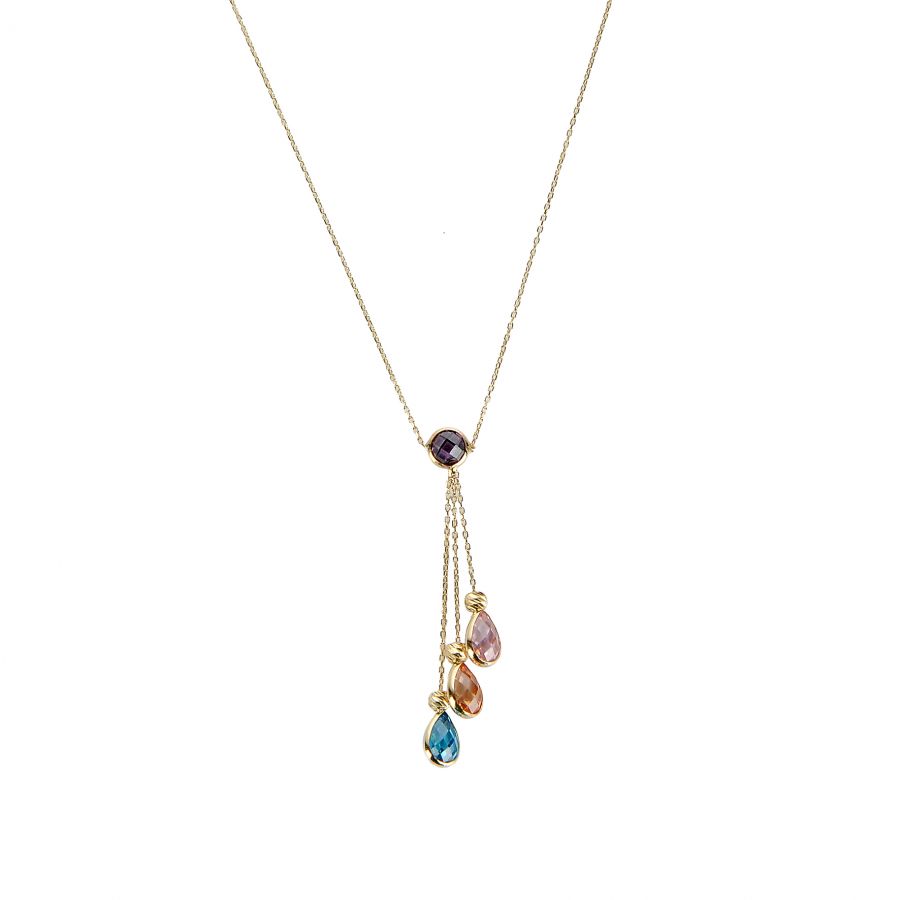 Renkli Taşlı Damla Altın Kolye 14KLY1022