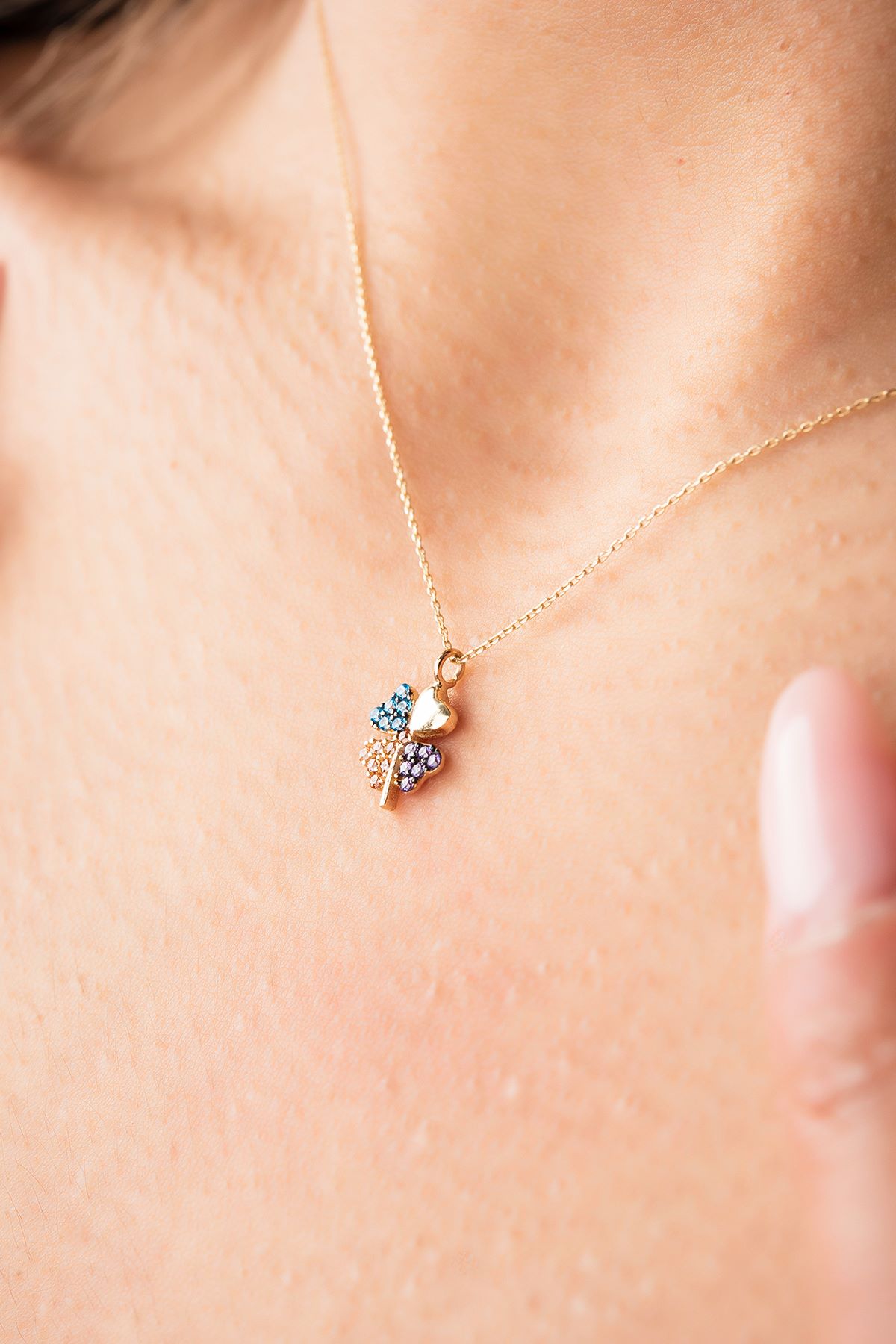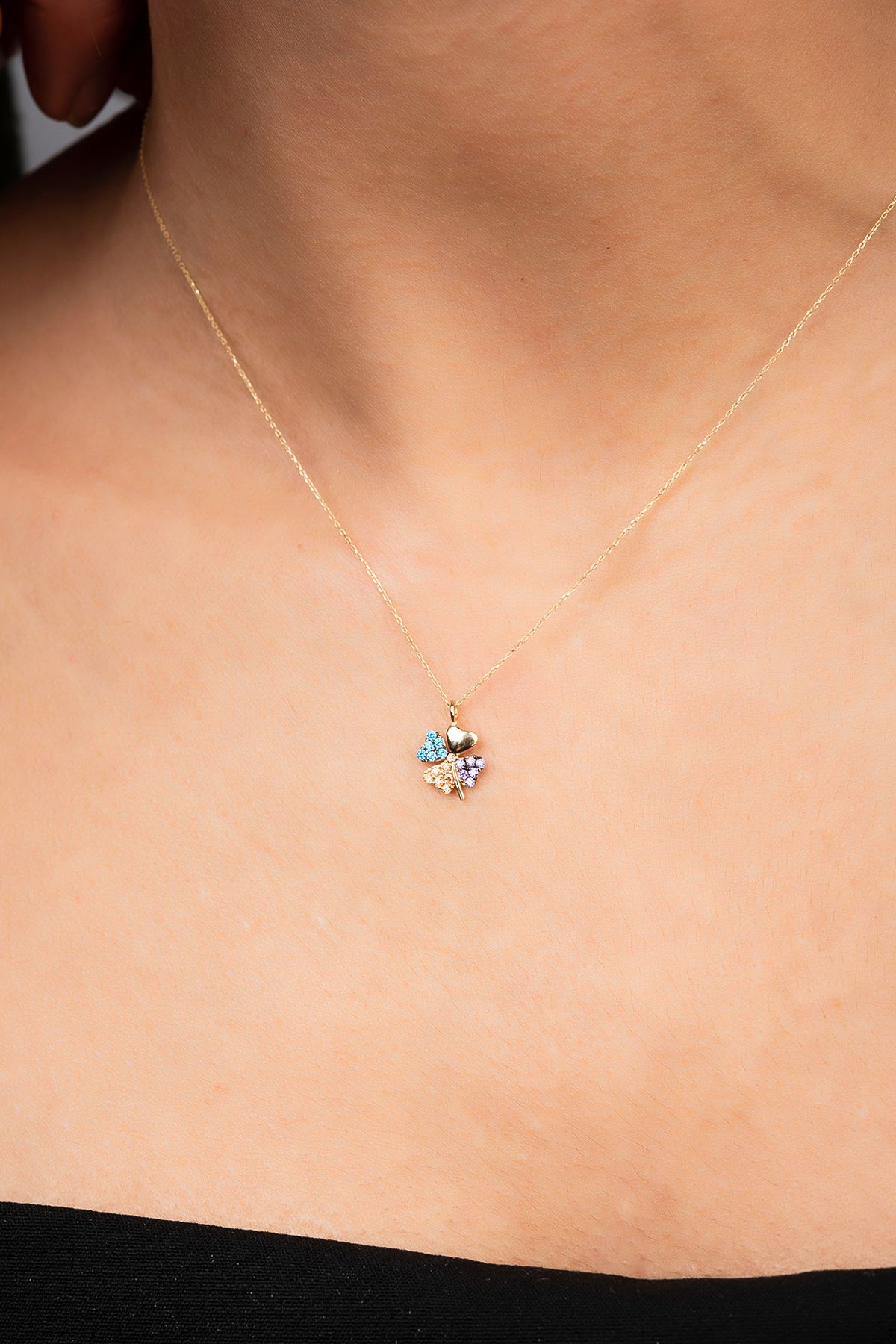 Renklı Taşlı Yonca Hayalet Altın 8KLY802