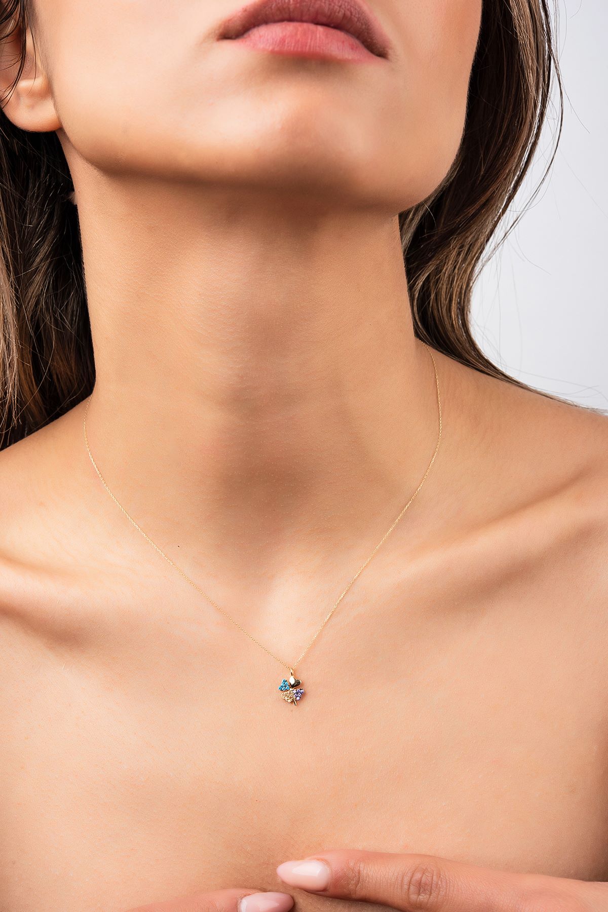 Taşlı Yusufçuk Hayalet Altın Kolye 8KLY753
