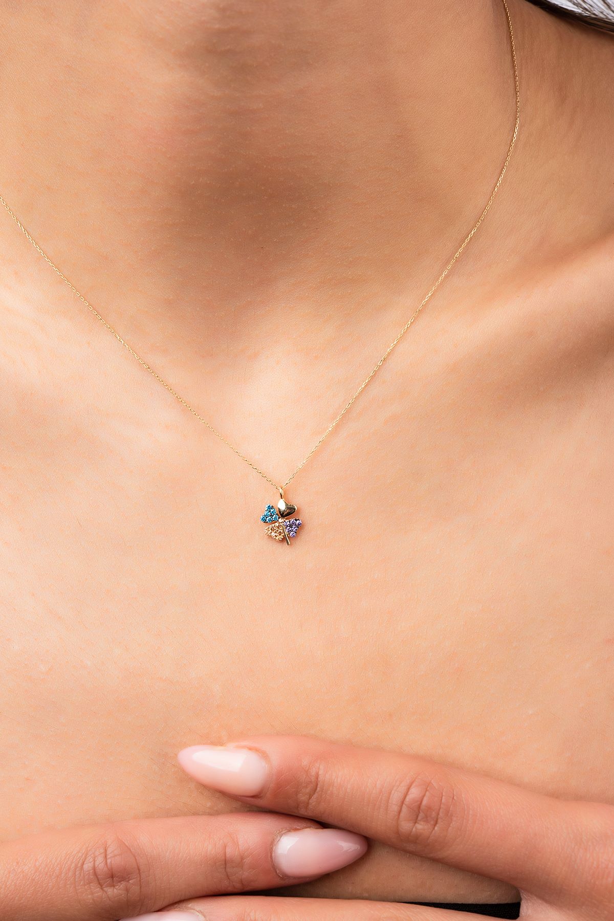 Kelebekli Kalp Hayalet Altın Kolye 8KLY791
