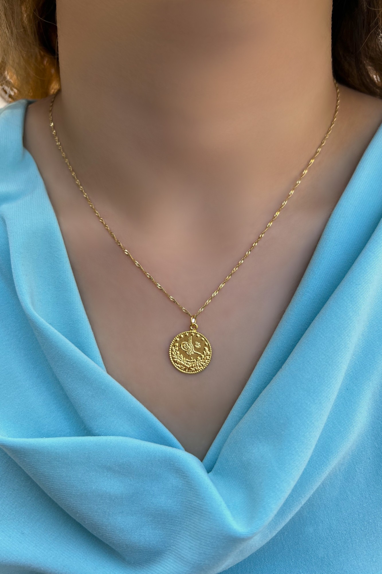 Singapur Zincirli Tuğralı Altın Kolye 14KLY8654