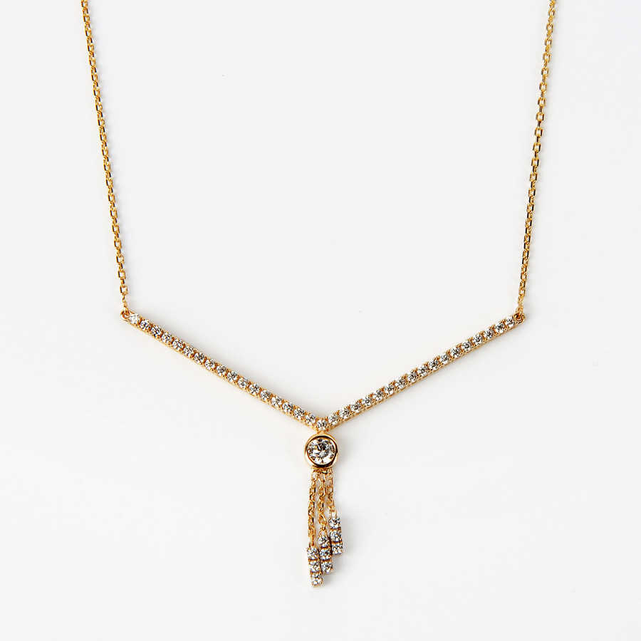 Taşlı Kalp Parlak Altın Kolye 14KLY2190