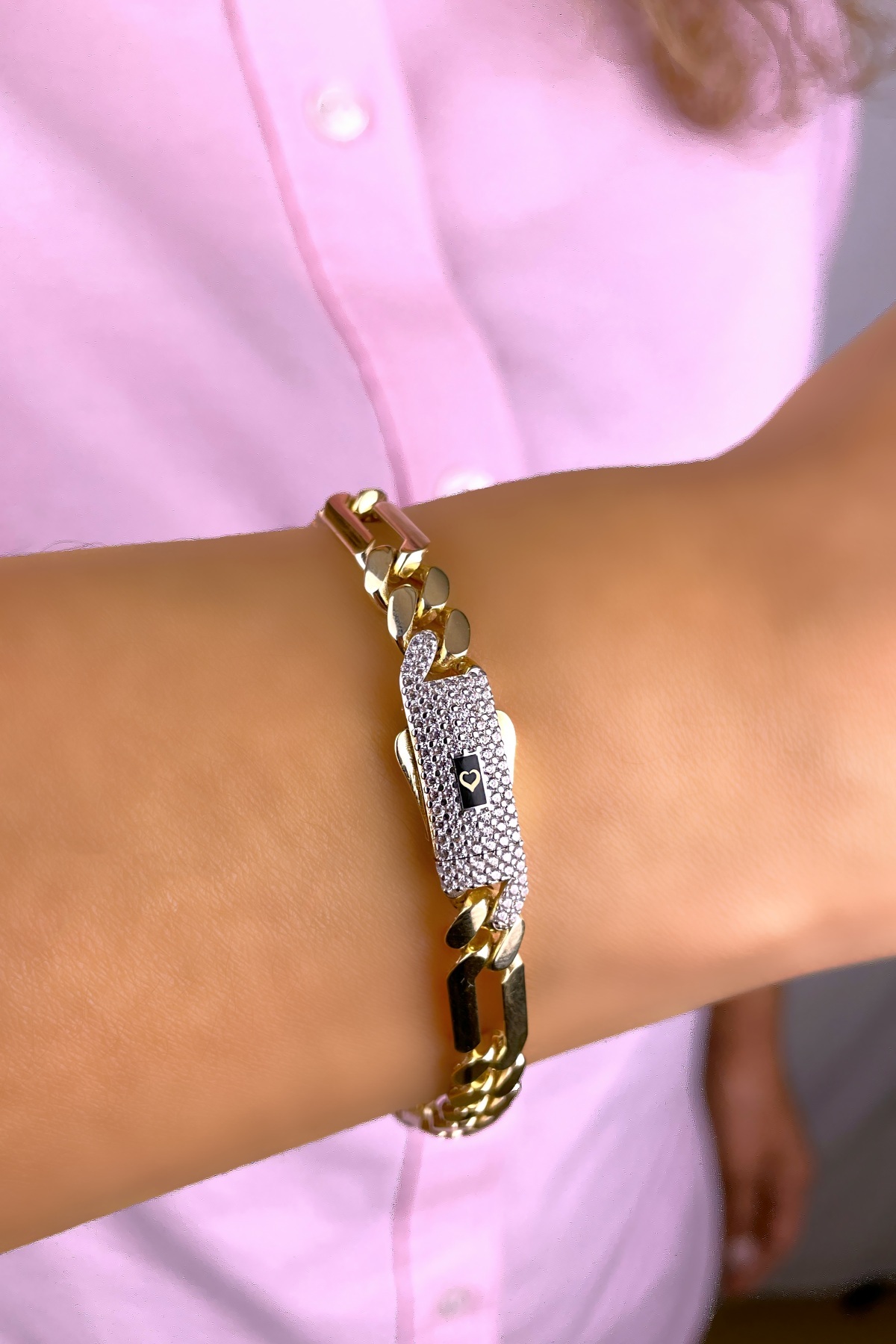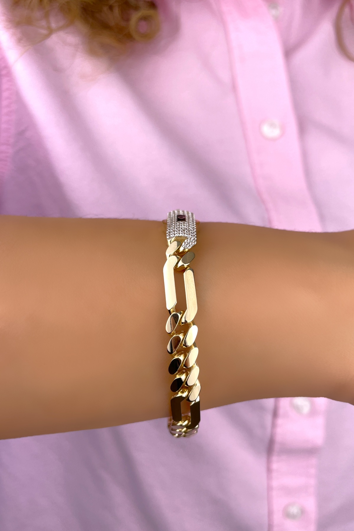 Taşlı Altınaşkı Figaro Altın Bileklik 14KNY334