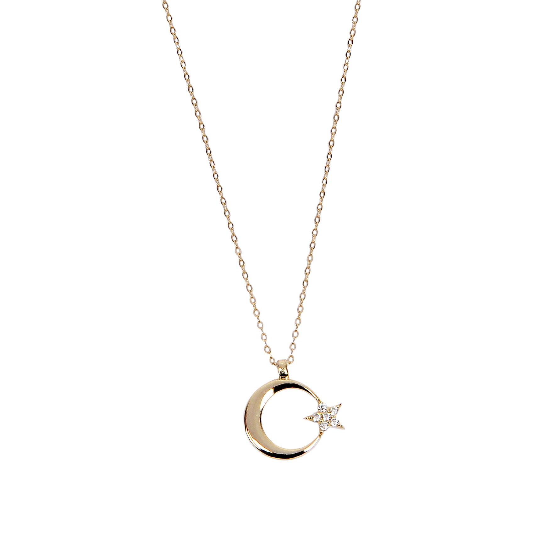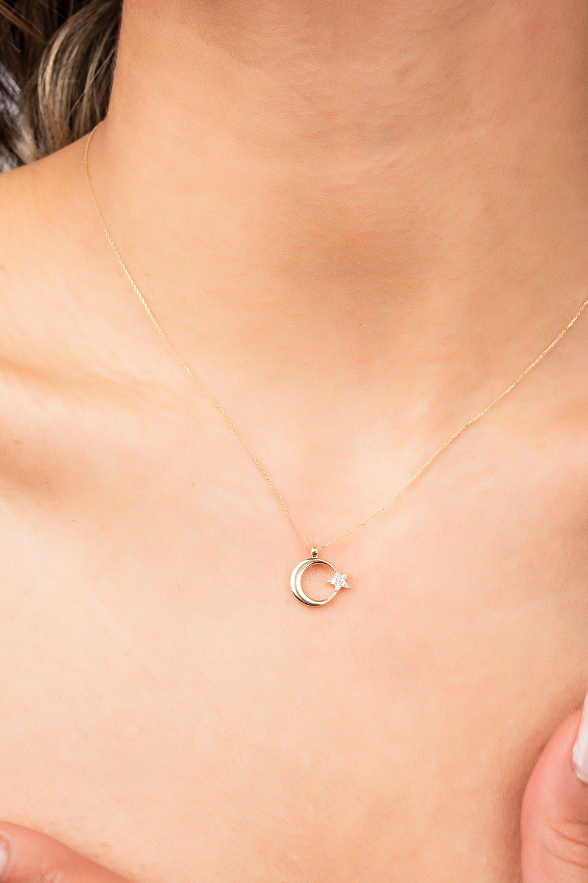 Taşlı Ay Yıldız Hayalet Altın Kolye 8KLY752