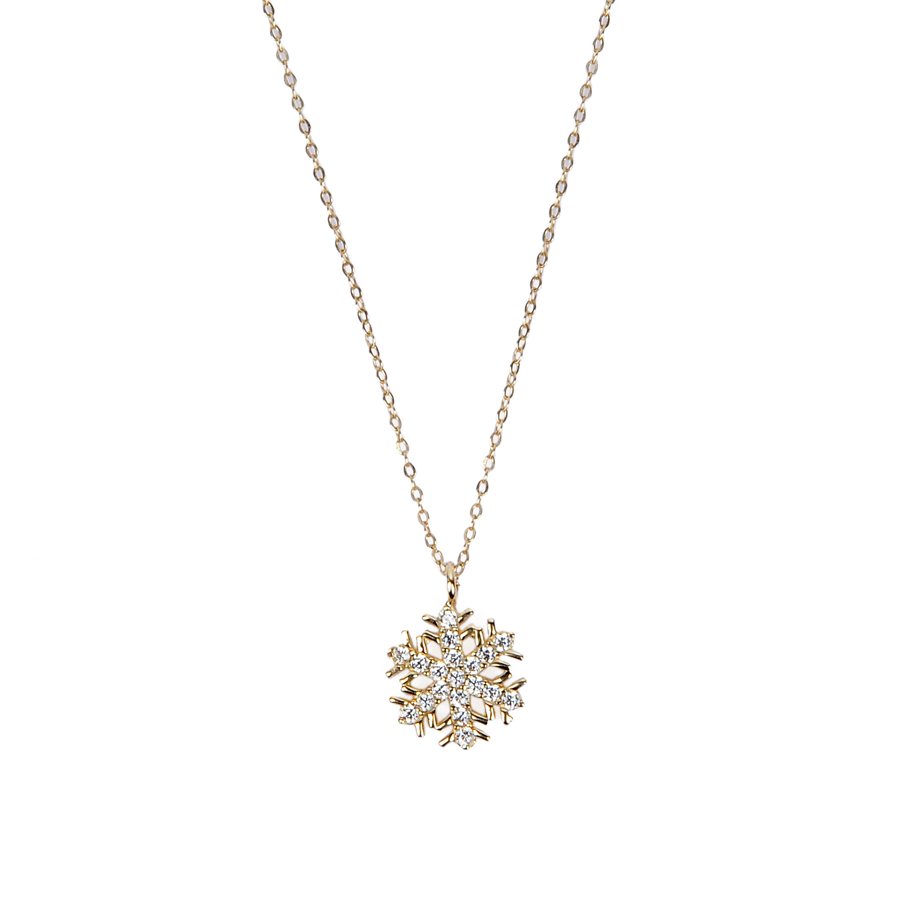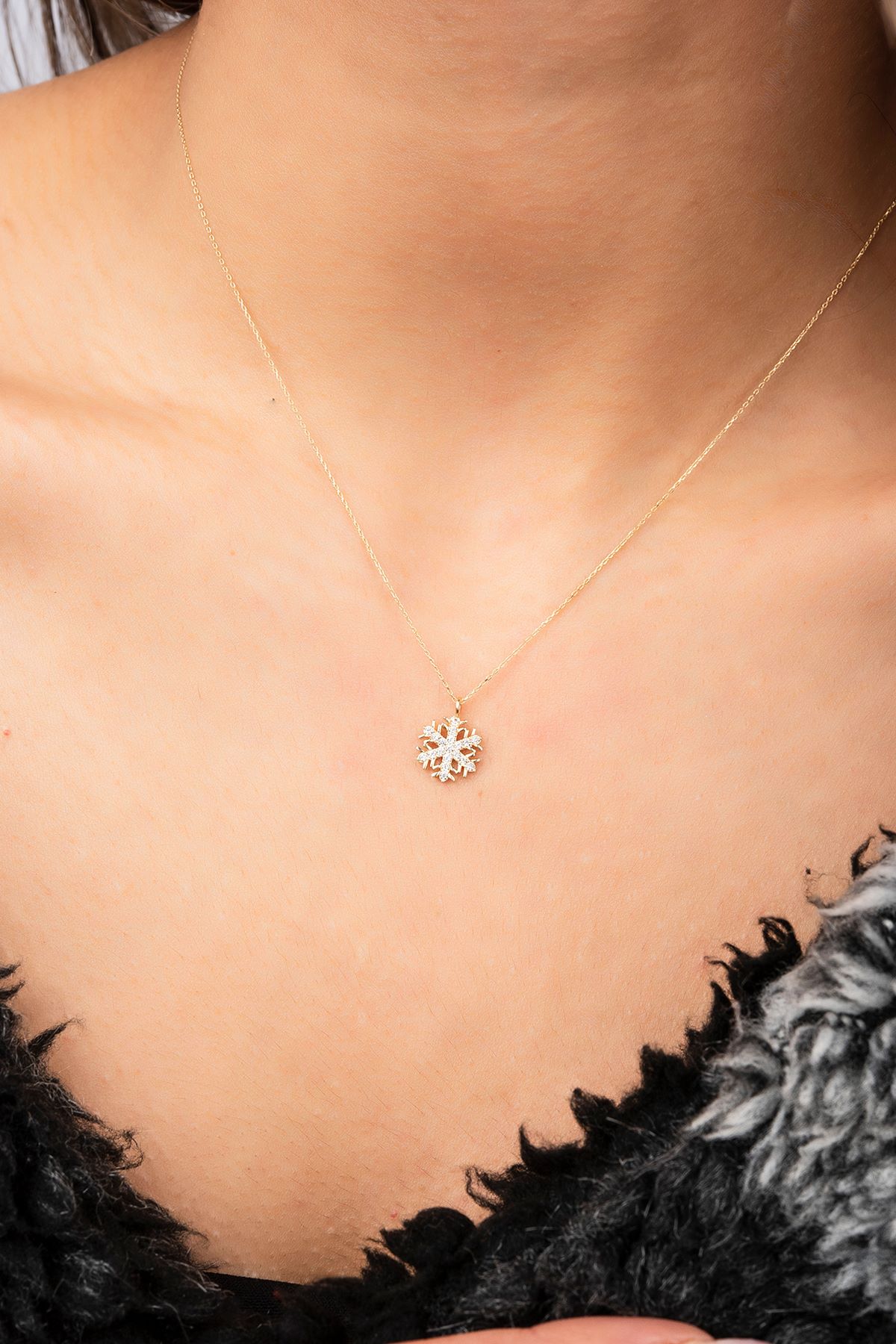 Taşlı Kar Tanesi Hayalet Altın Kolye 8KLY738