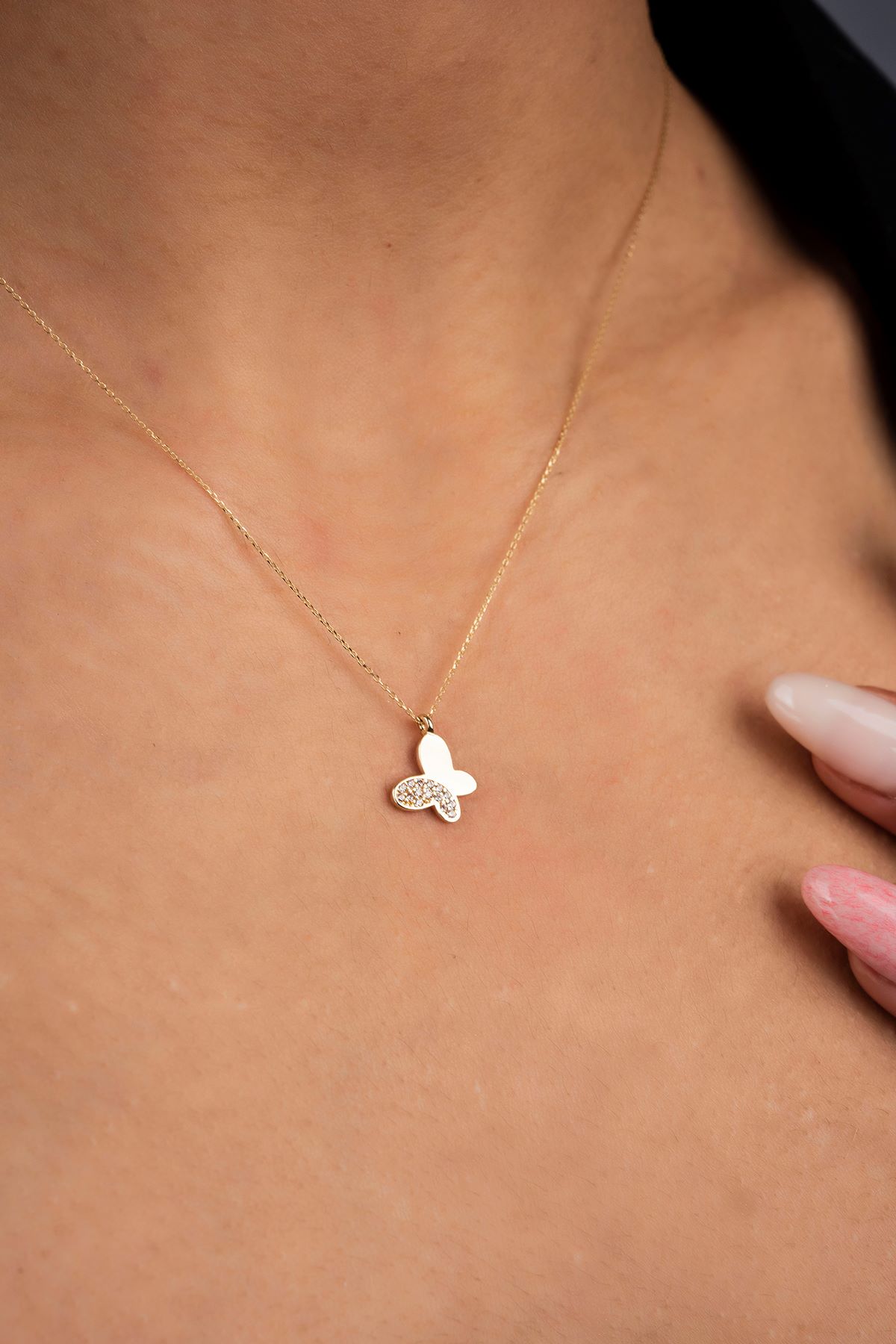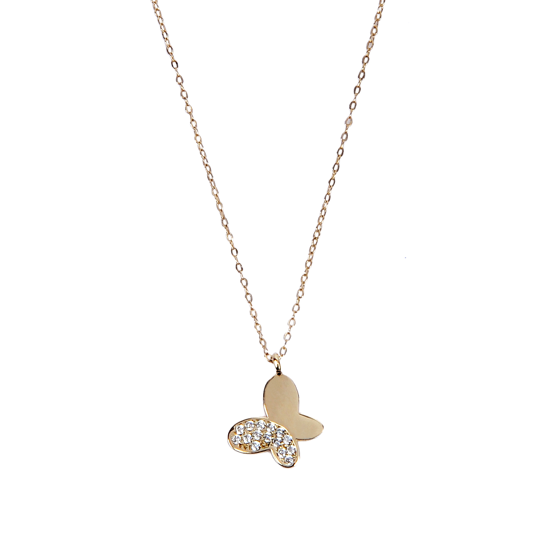 Taşlı Kelebek Hayalet Altın Kolye 8KLY745