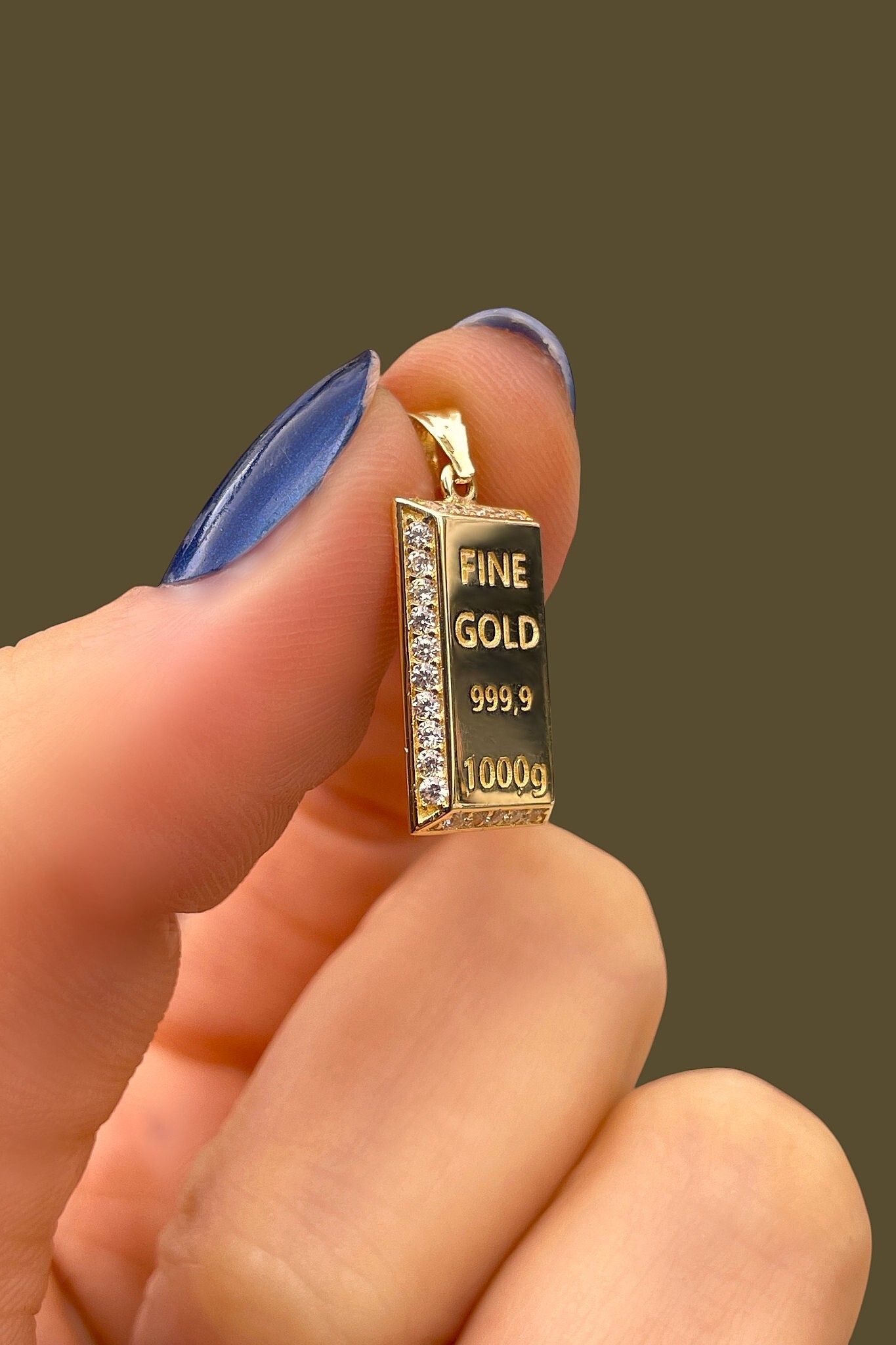 Taşlı Külçe Altın Kolye Ucu 14KLY2344