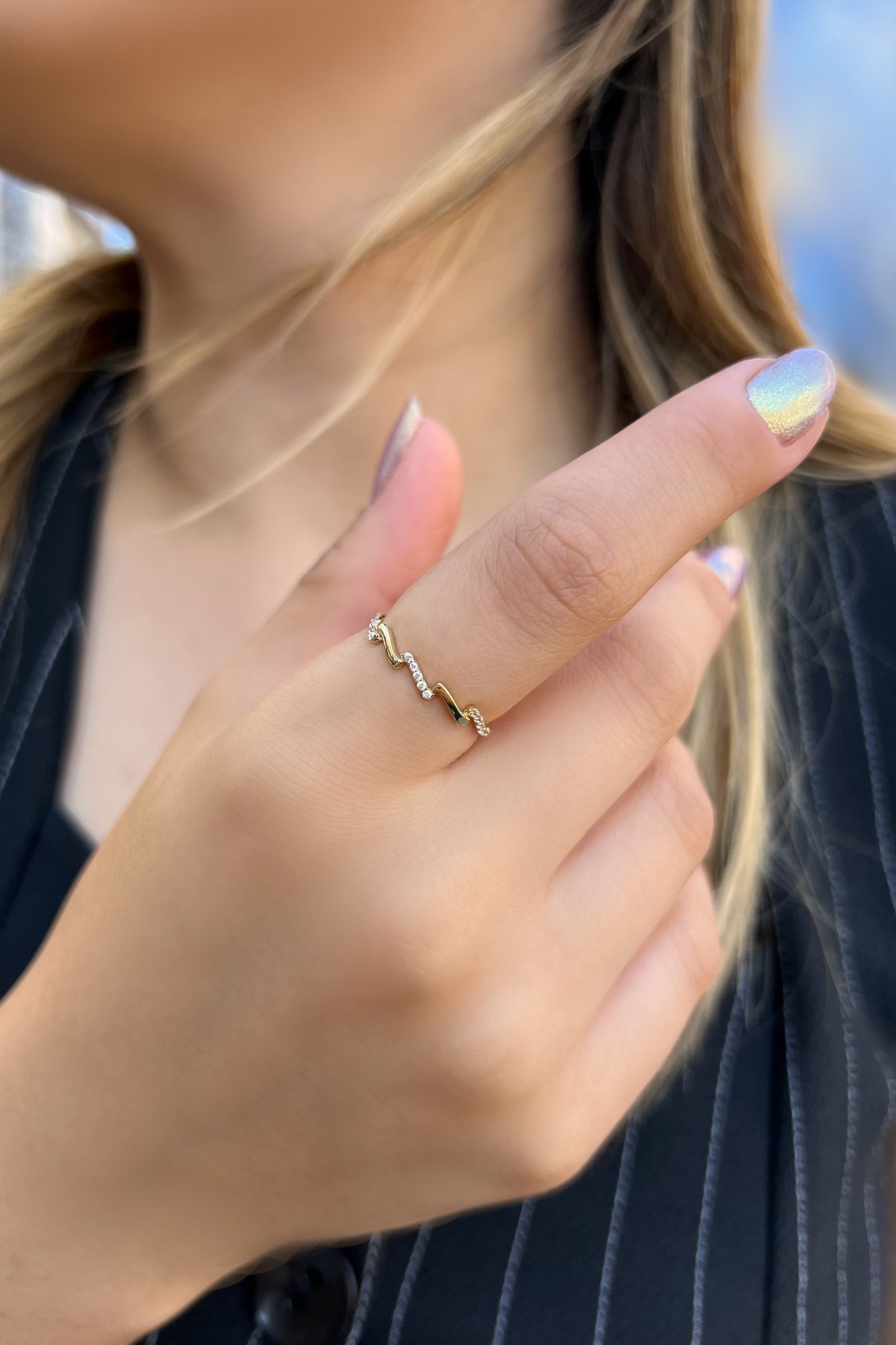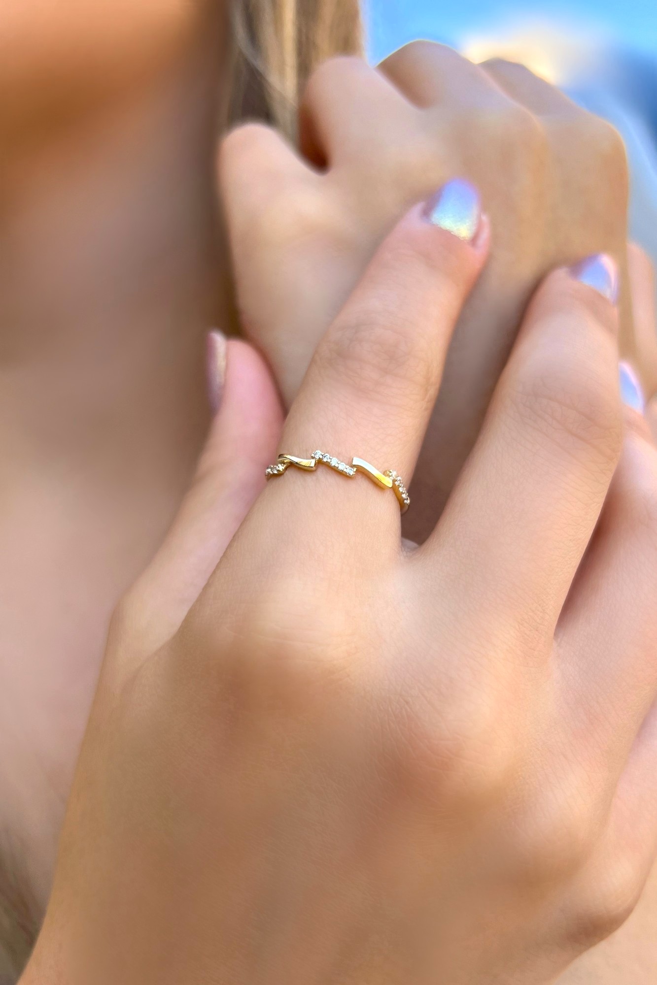 Taşlı Zikzak Altın Yüzük 14YZ5763