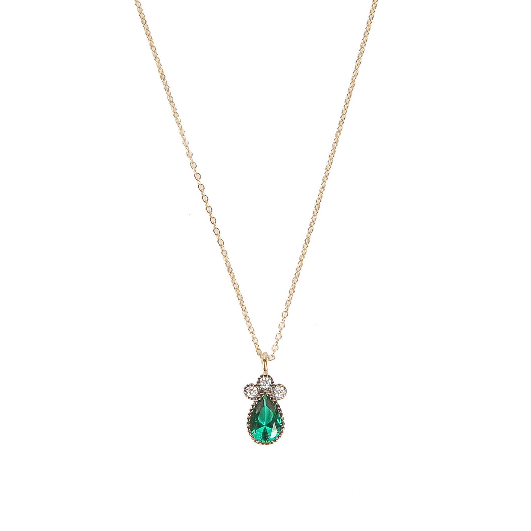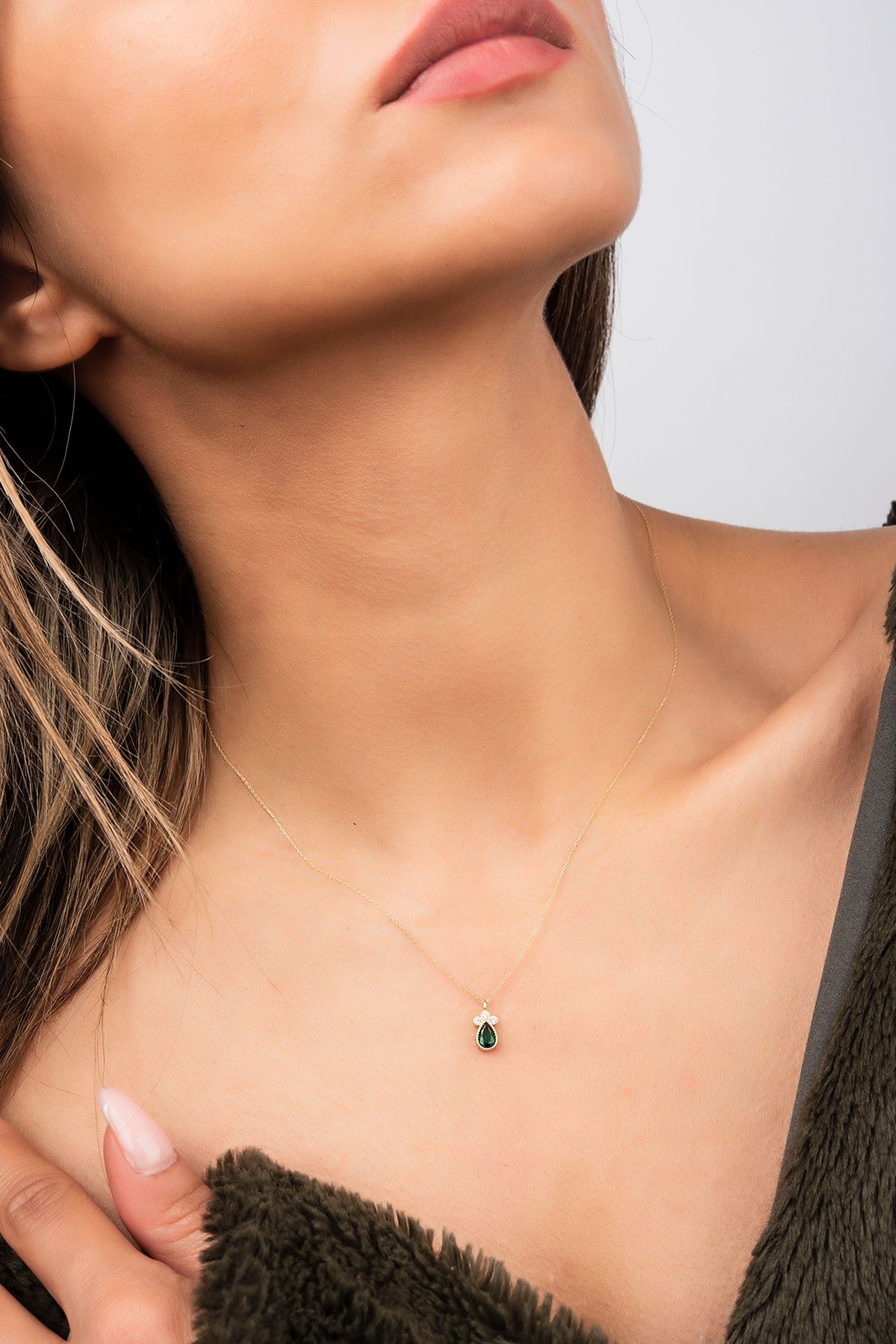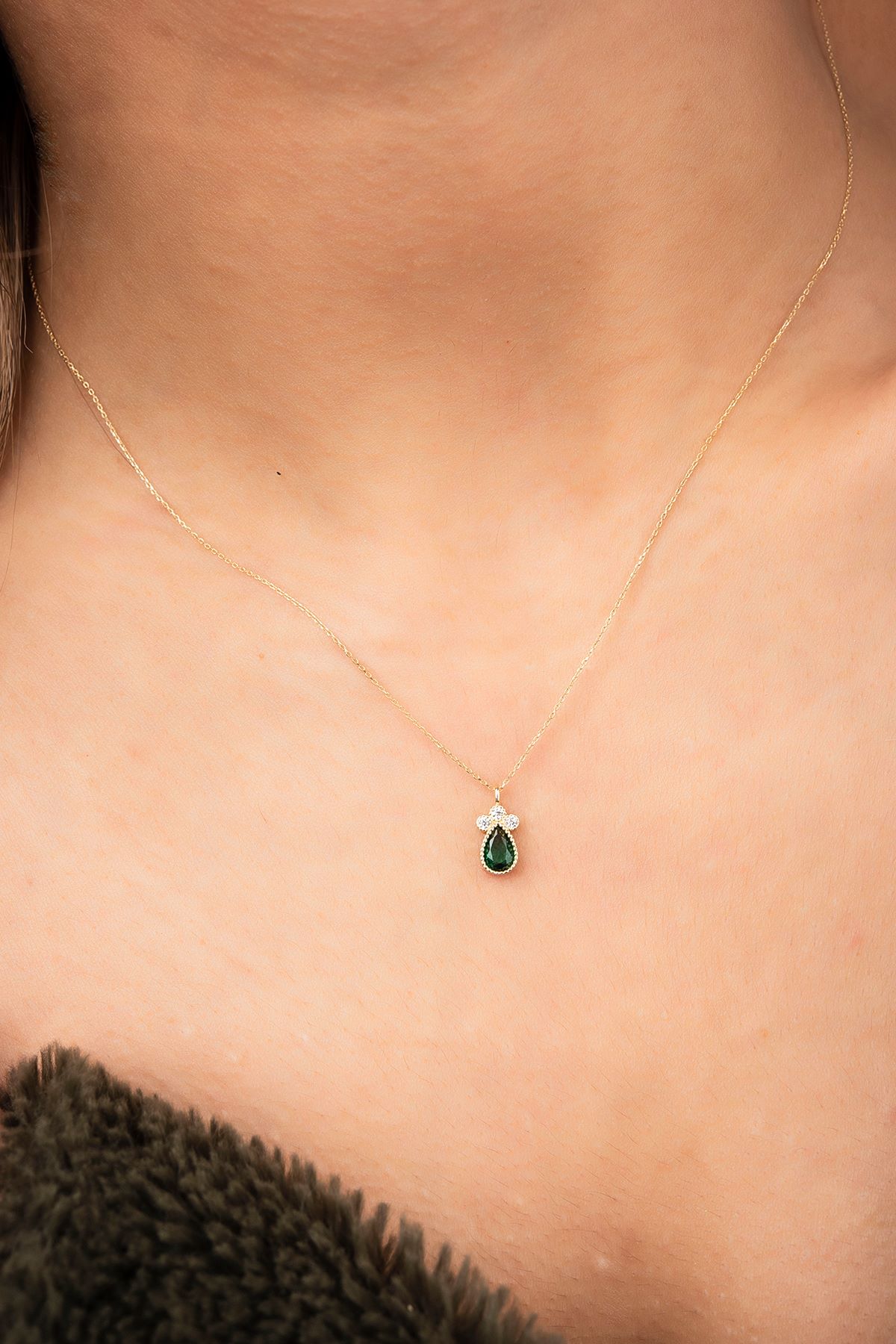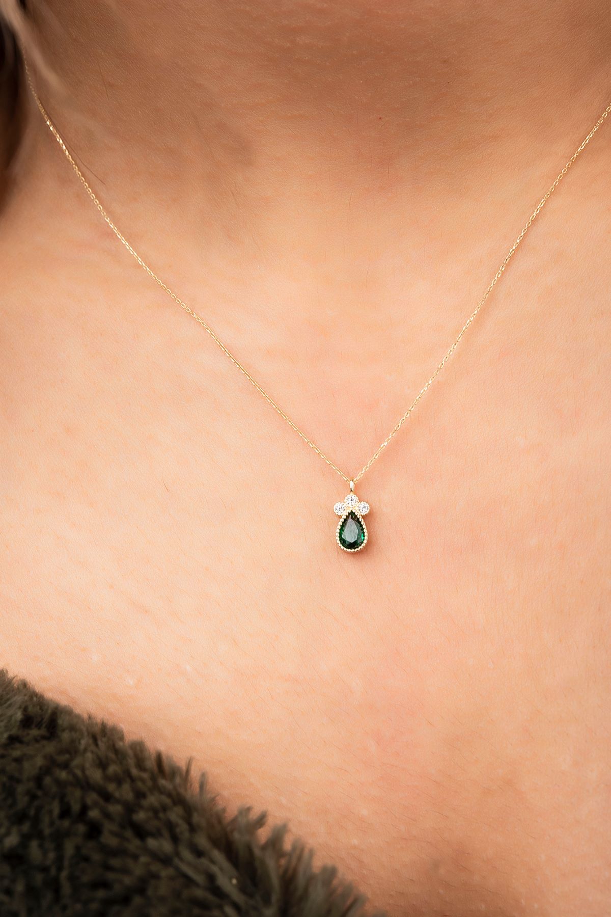 Yeşil Taşlı Damla Hayalet Altın Kolye 8KLY491