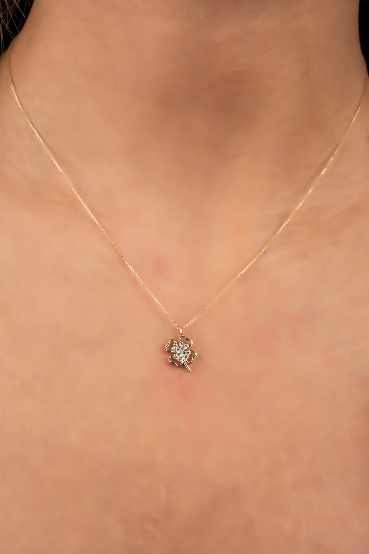 Renklı Taşlı Yonca Hayalet Altın 8KLY802
